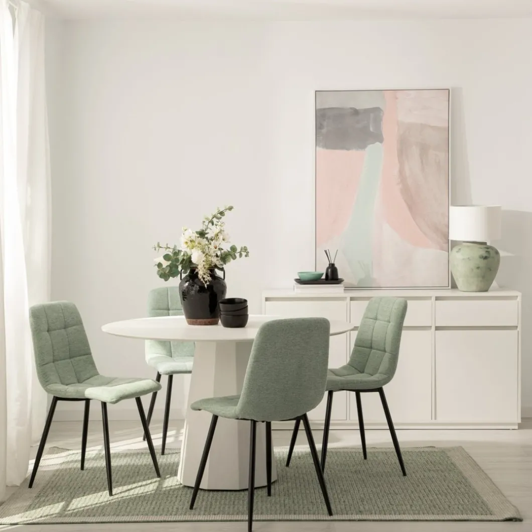 ¡Aprovéchate de este pack! La silla de comedor tapizada en menta con pata negra Ailan es la elección perfecta para dar un toque de estilo y confort a tu hogar. Su diseño sencillo y minimalista encaja en cualquier estilo decorativo y aporta carácter y personalidad a cualquier estancia. Está disponible en una amplia gama de tonos, escoge el que mejor encaje con tu estilo.
