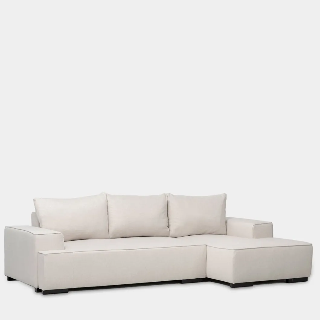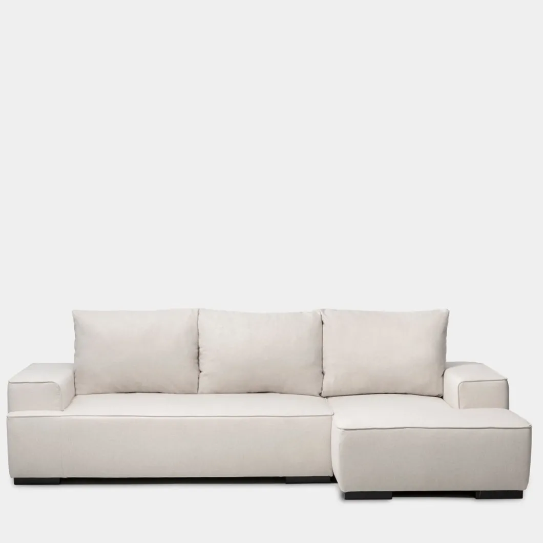 El sofá cama chaise longue derecha de 3 plazas en color beige Alan es la combinación perfecta de estilo y funcionalidad. Este sofá no solo añade un toque de sofisticación a tu salón, sino que también ofrece una versatilidad incomparable gracias a su ingenioso diseño convertible. En un abrir y cerrar de ojos, podrás transformar el cómodo sofá en una cama espaciosa, brindando una solución práctica y acogedora para alojar a tus invitados. La chaise longue, al mirar de frente el sofá, queda ubicada a la derecha.