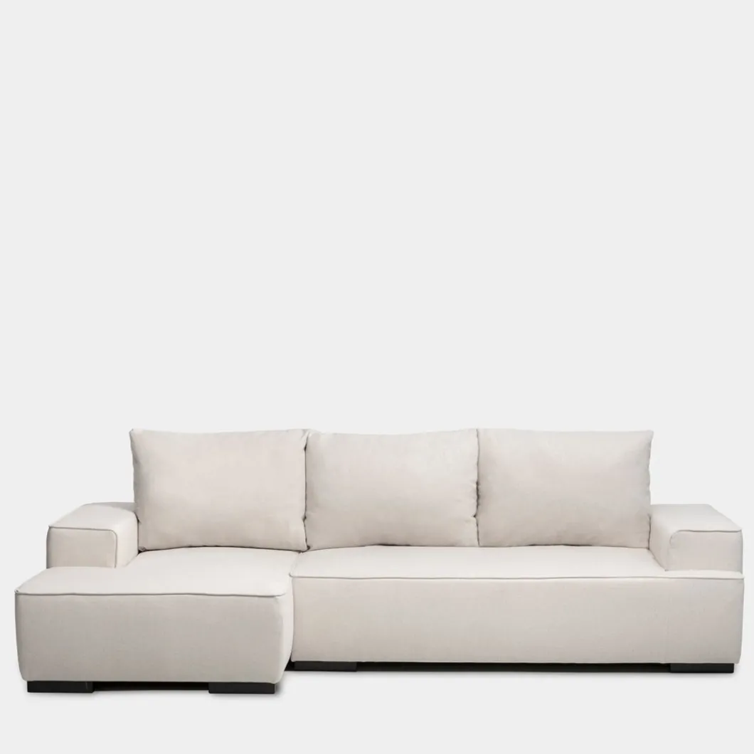 El sofá cama chaise longue izquierda de 3 plazas en color beige Alan es la combinación perfecta de estilo y funcionalidad. Este sofá no solo añade un toque de sofisticación a tu salón, sino que también ofrece una versatilidad incomparable gracias a su ingenioso diseño convertible. En un abrir y cerrar de ojos, podrás transformar el cómodo sofá en una cama espaciosa, brindando una solución práctica y acogedora para alojar a tus invitados. La chaise longue, al mirar de frente el sofá, queda ubicada a la izquierda.