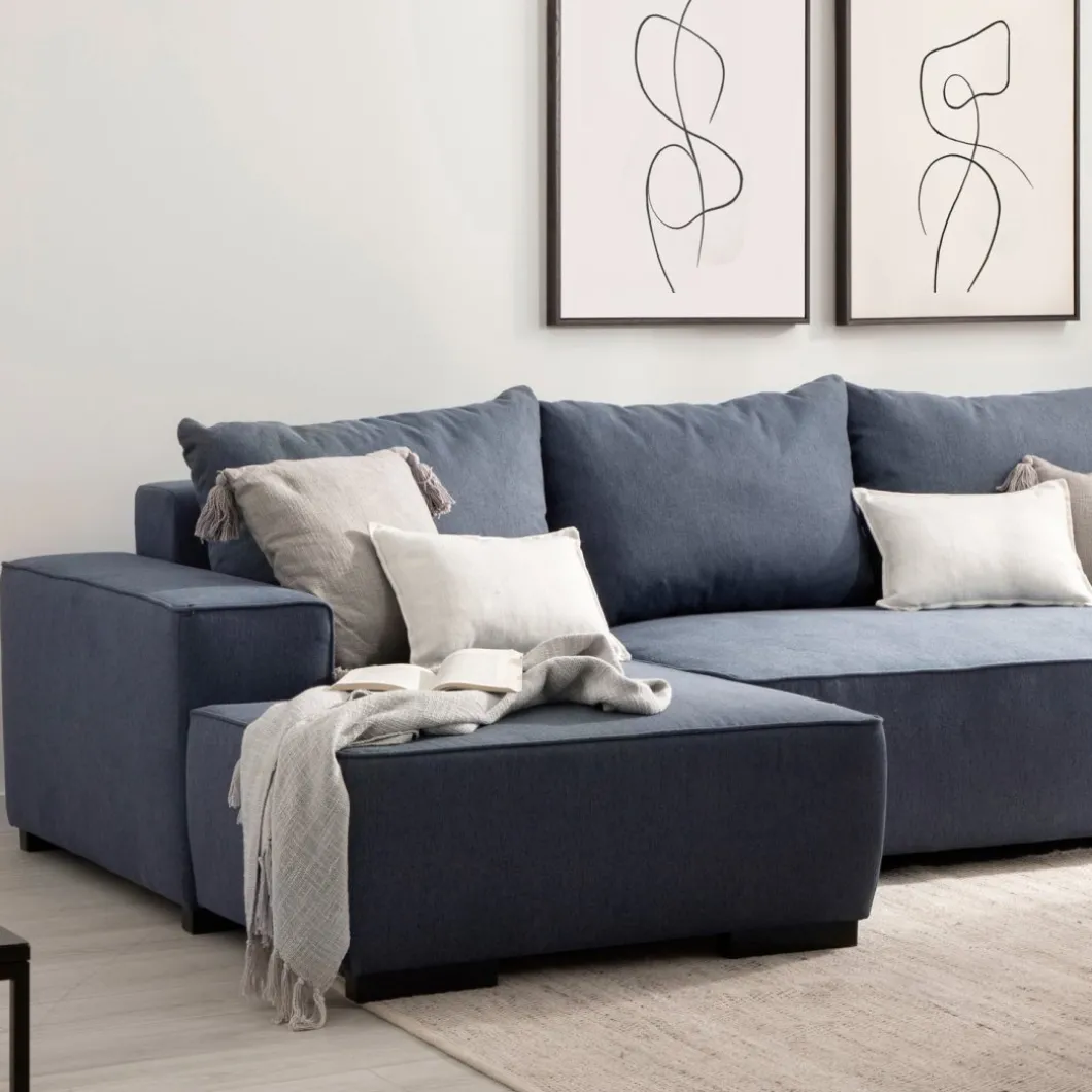 El sofá cama chaise longue izquierda de 3 plazas en color azul Alan es la combinación perfecta de estilo y funcionalidad. Este sofá no solo añade un toque de sofisticación a tu salón con su vibrante tono azul, sino que también ofrece una versatilidad incomparable gracias a su ingenioso diseño convertible. En un abrir y cerrar de ojos, podrás transformar el cómodo sofá en una cama espaciosa, brindando una solución práctica y acogedora para alojar a tus invitados. La chaise longue, al mirar de frente el sofá, queda ubicada a la izquierda.