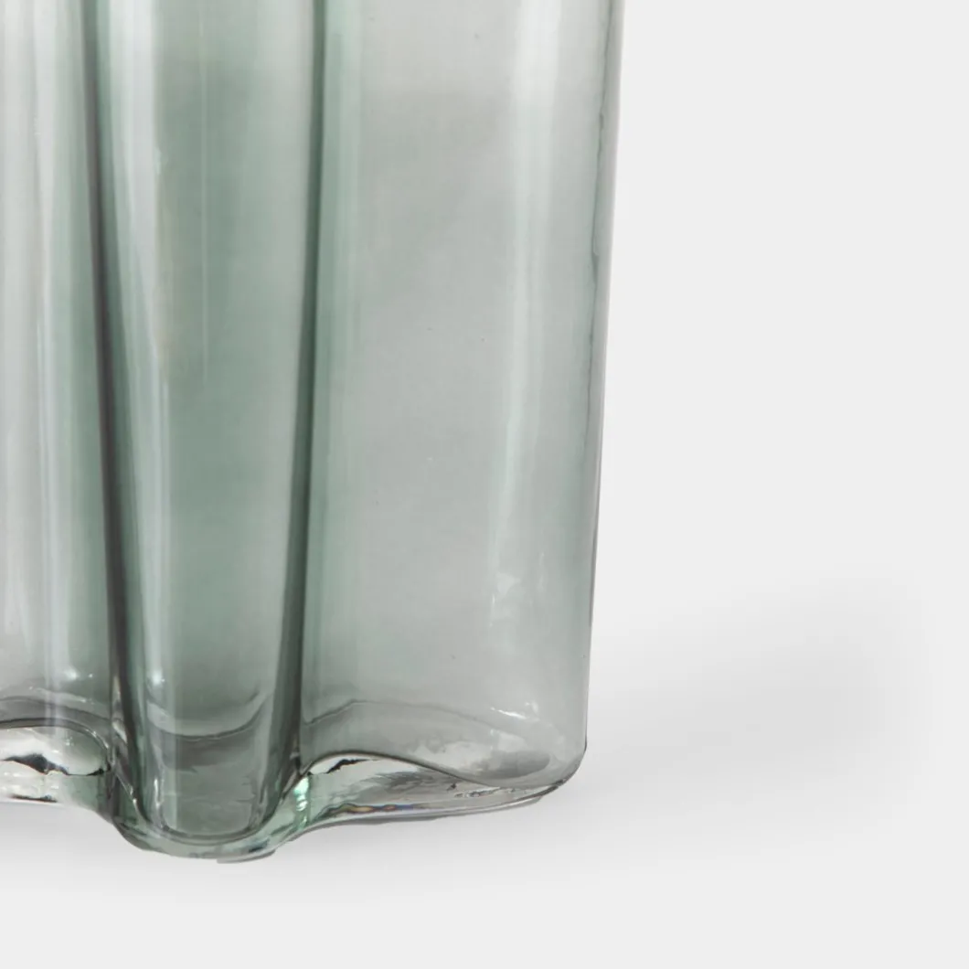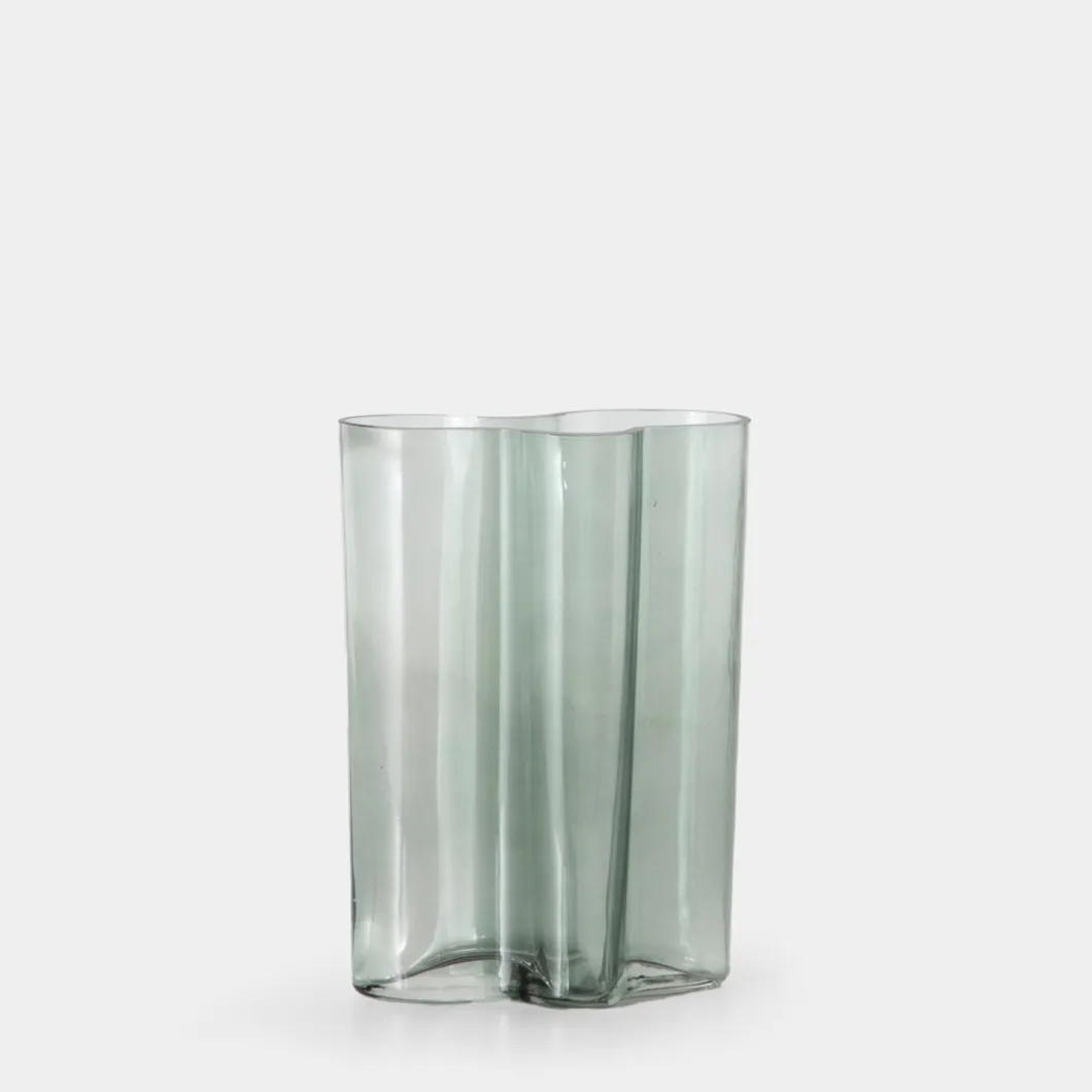 El elegante jarrón de cristal ahumado color azul Alvar es una pieza decorativa que aporta un toque de sofisticación y estilo a cualquier espacio. Su diseño en forma natural, con contornos fluidos y orgánicos, lo convierte en un elemento único que destaca tanto vacío como con flores.