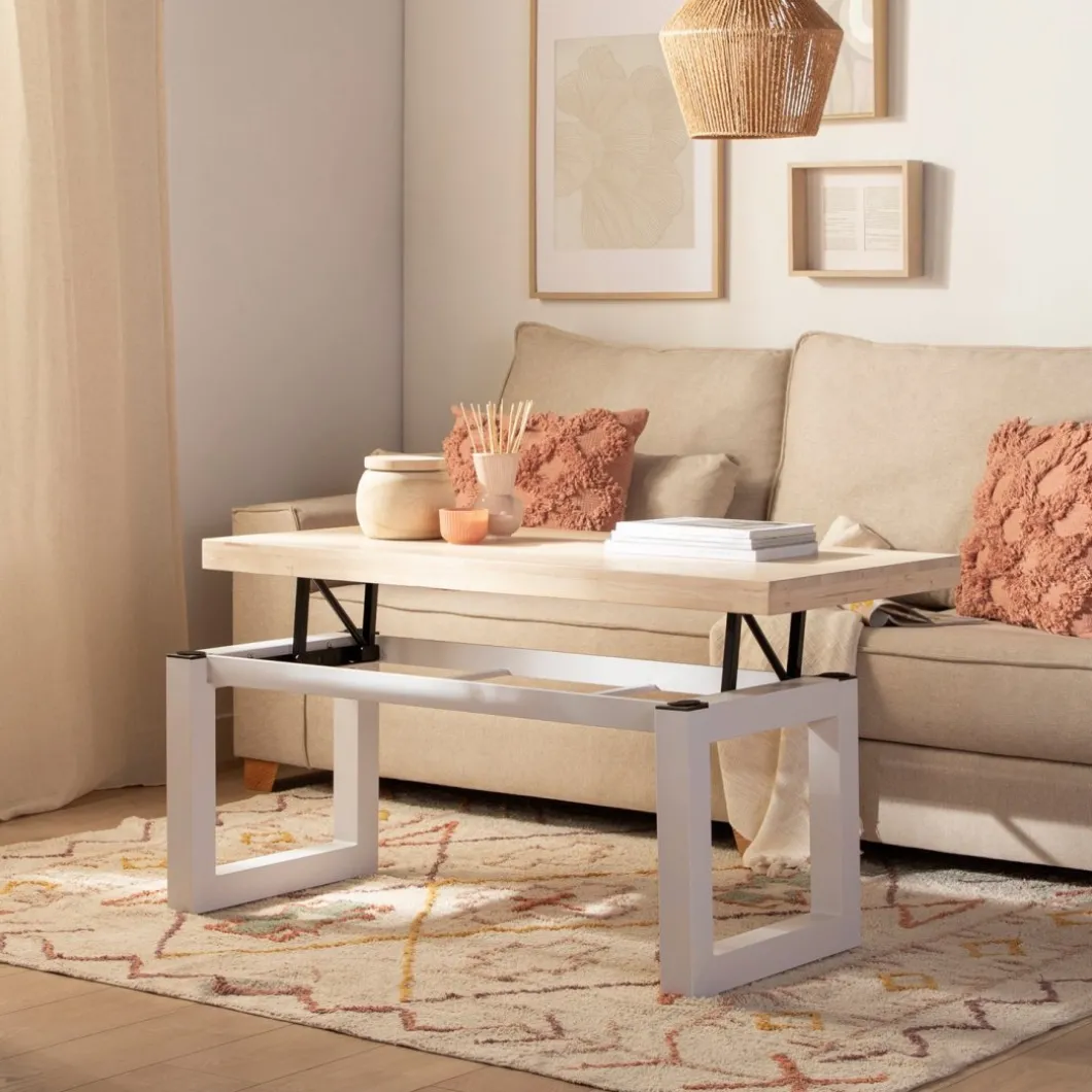 La mesa de centro elevable en madera de roble y pata metálica blanca Alys combina diseño y funcionalidad. Se trata de una pieza sencilla, clásica y versátil con la que podrás trabajar con tu ordenador o comer cómodamente desde el sofá. El sobre de madera de roble puede presentar ligeras variaciones de color respecto al que se muestra en la imagen. Está disponible en varios acabados, escoge el que más te guste.