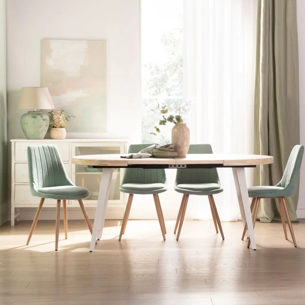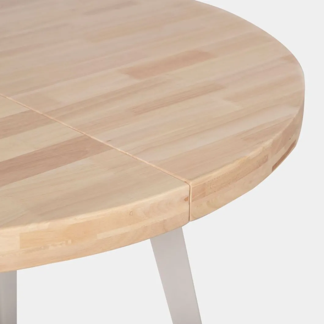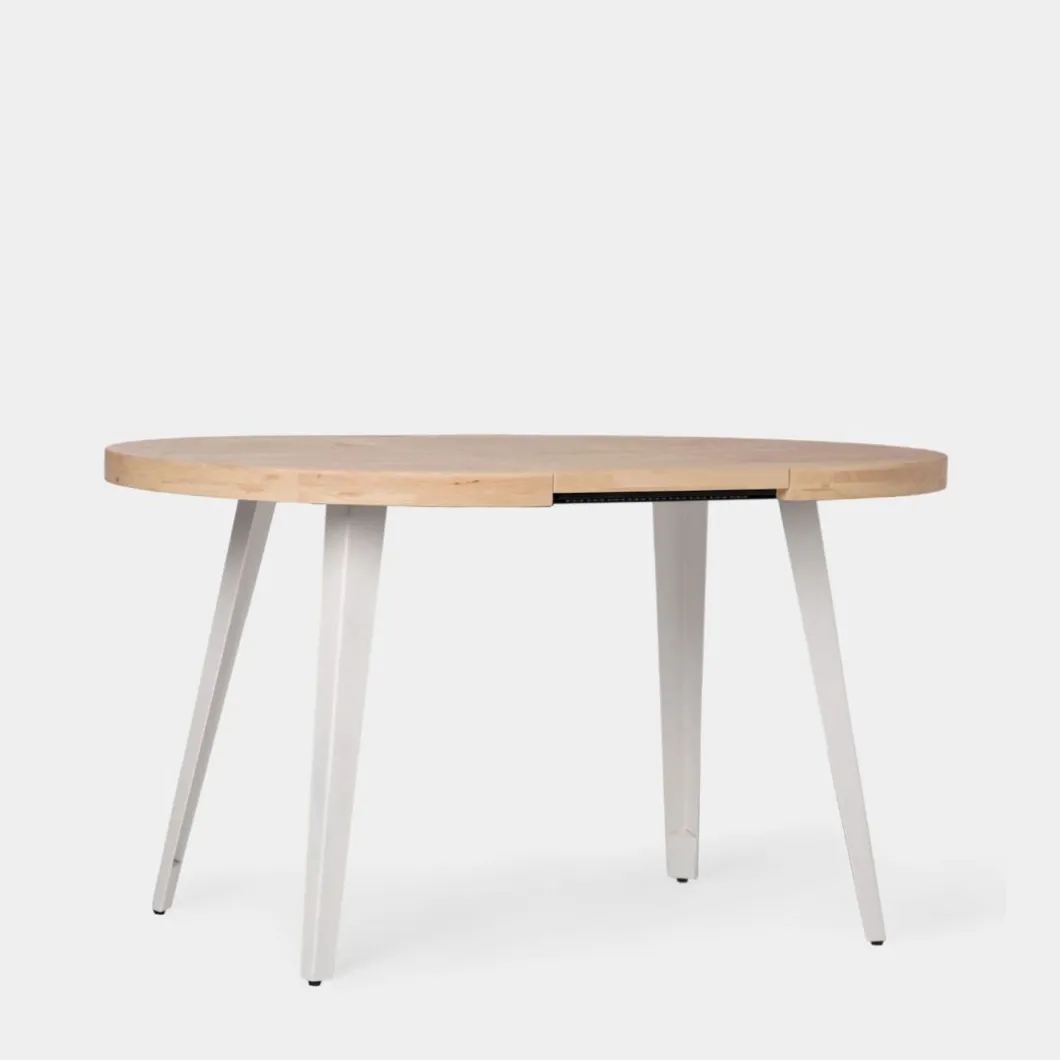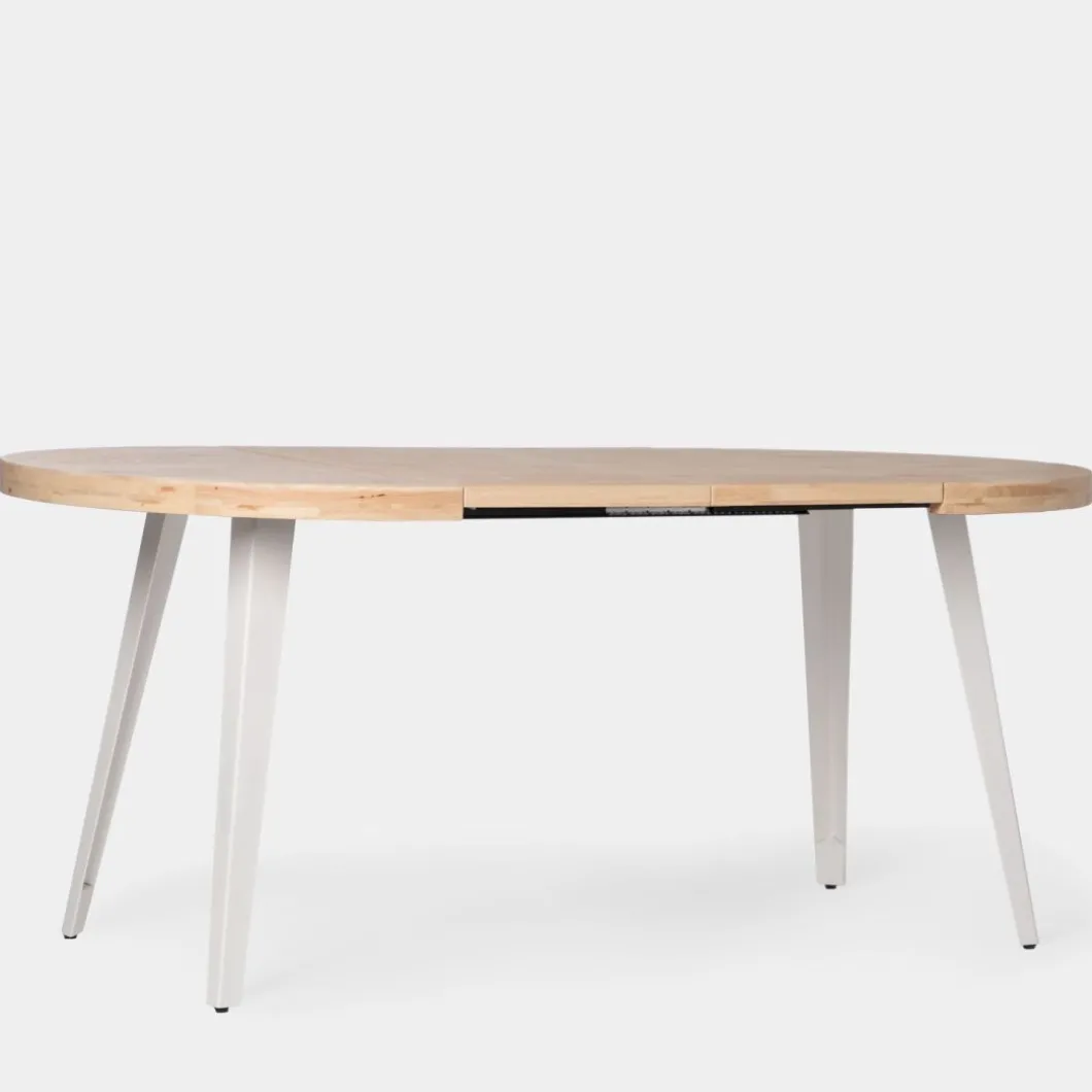 La mesa de comedor extensible Anais en madera de roble con pata metálica blanca es un básico que quedará genial en tu comedor o cocina. Además, gracias a su sistema extensible de fácil apertura y sus dos extensibles podrás ampliar sus medidas a 140 o 180, pasando de una mesa de 4 comensales a una de 8 sin esfuerzo. Los dos extensibles no van integrados en la mesa, por lo que se incluye una bolsa para poder guardarlos.