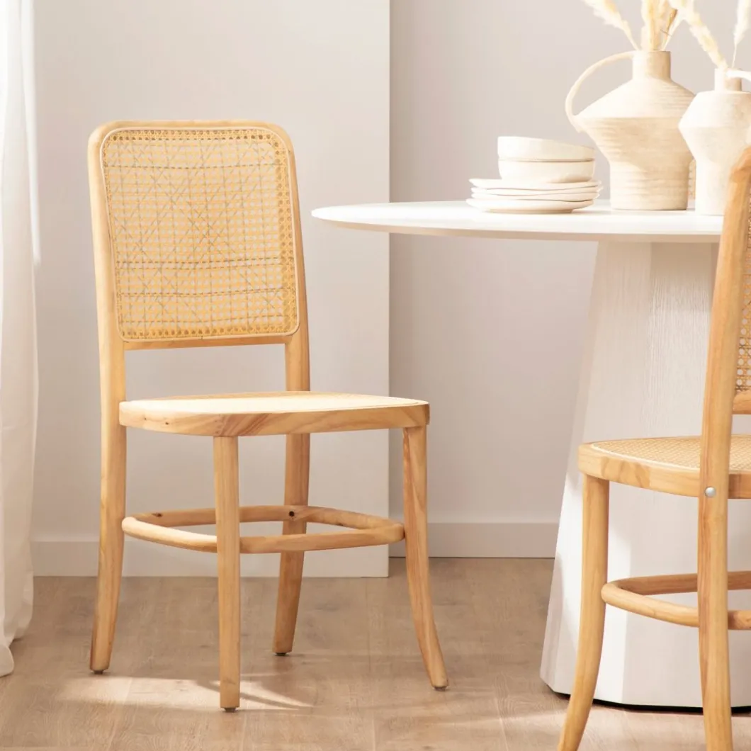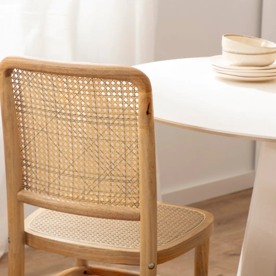 Completa la decoración de tu hogar con la elegancia natural de la silla de comedor Ania. Elaborada en madera de hevea y ratán, esta silla presenta un diseño clásico con un toque contemporáneo. Su diseño atemporal y materiales de alta calidad la convierten en una pieza versátil, perfecta para complementar cualquier estilo decorativo.
