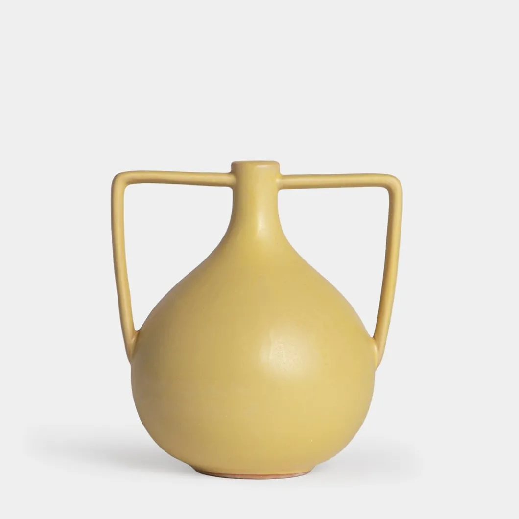 Este encantador jarrón de gres en color mostaza es una pieza única que aporta un toque de elegancia rústica a cualquier espacio. Su diseño en forma de jarra, con dos asas funcionales, evoca una estética tradicional y atemporal. El acabado esmaltado en mostaza profundo destaca por su vibrante color y su suave brillo, mientras que las asas proporcionan un detalle distintivo y práctico. Perfecto para exhibir flores frescas o ramas decorativas, este jarrón es un complemento versátil que realza tanto interiores modernos como clásicos.
