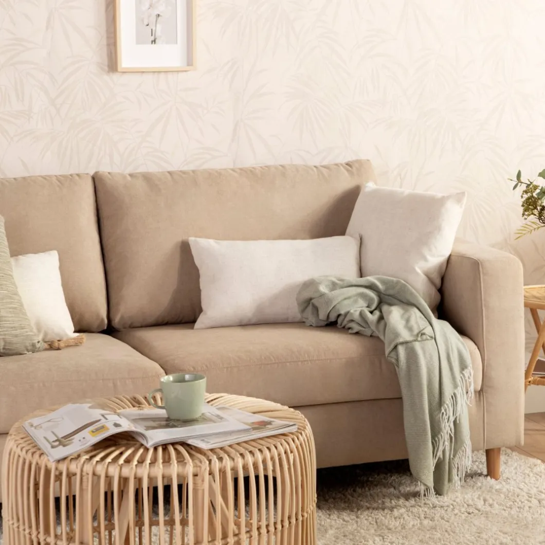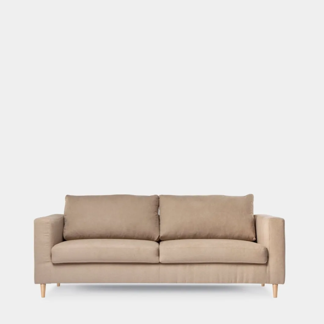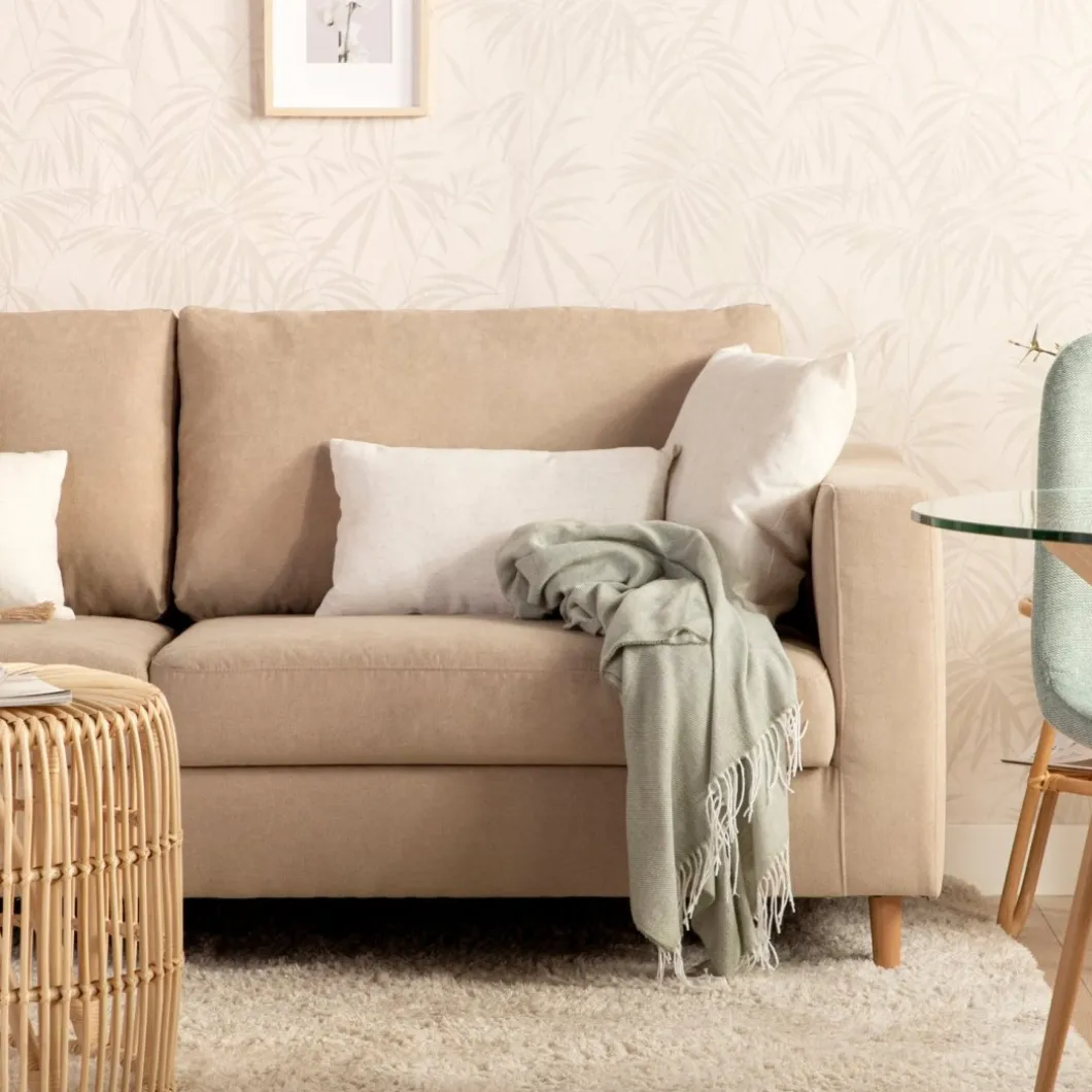 El sofá tres plazas Beth en color beige es cómodo y estiloso. Su patita en madera despuntada proporcionará un look nórdico a tu salón. Lo encontrarás también disponible en color gris. El sofá incluye 2 juegos de patas, en color madera claro y oscuro.