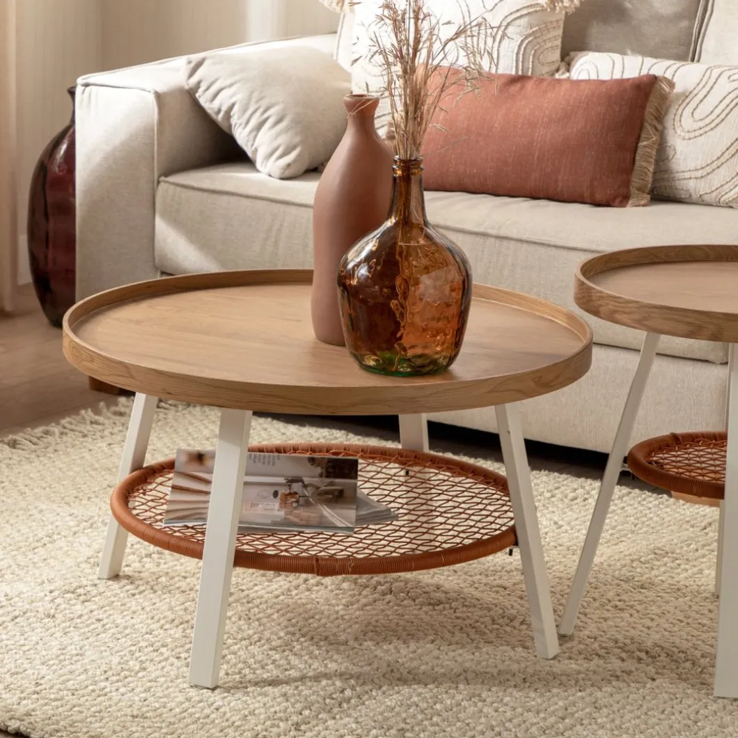 Dale a tu sala de estar un toque de frescura y modernidad con la mesa de centro en madera color natural con pata metálica blanca Birta. Se convertirá en el centro de atención de tu sala de estar. Combínala con la mesa auxiliar Birta y consigue un look completo y armonioso para tu salón.
