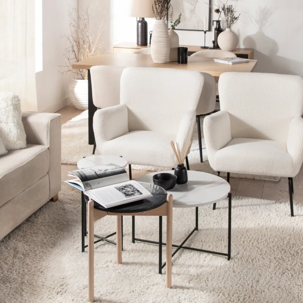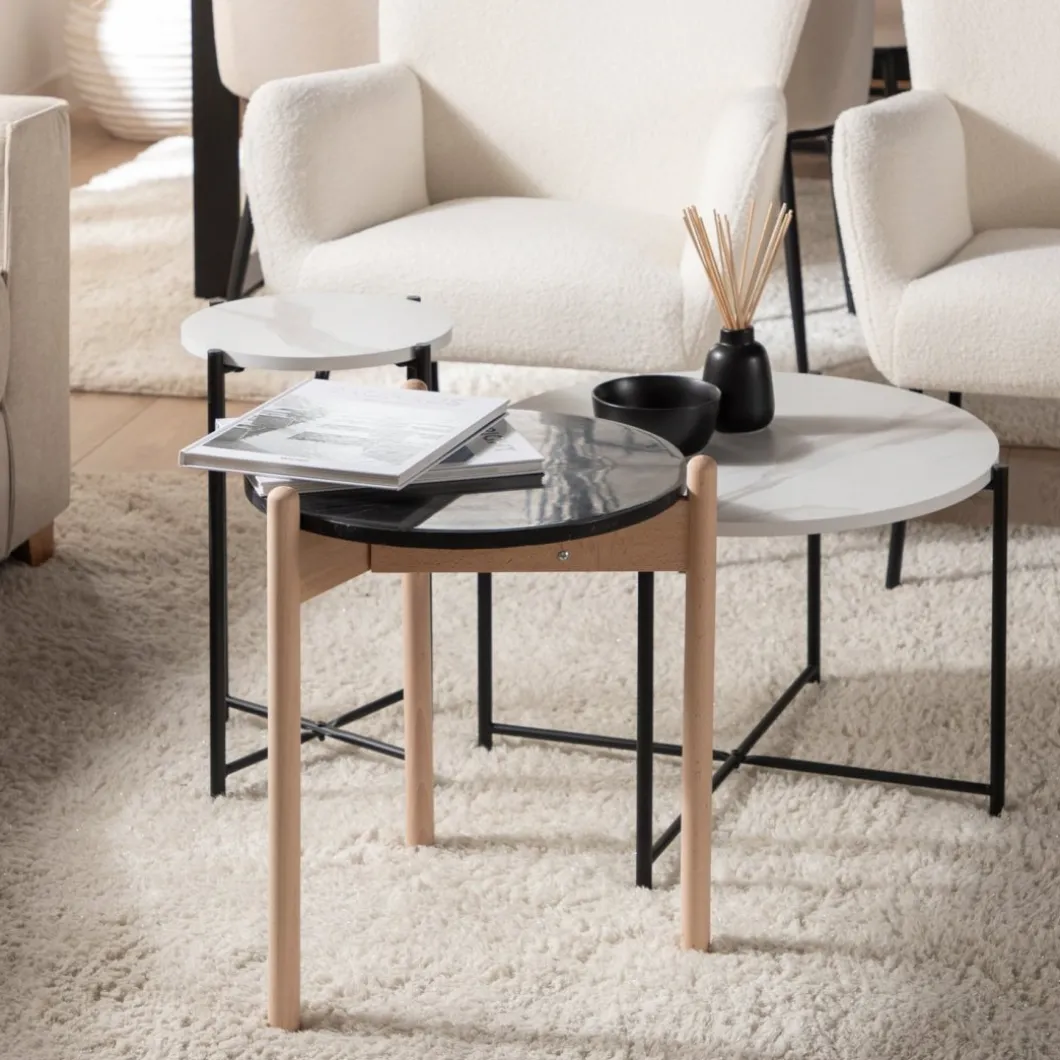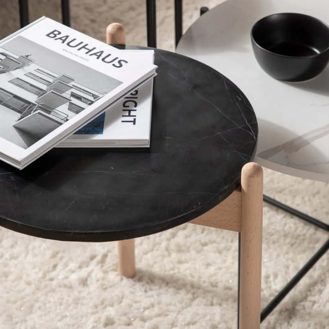 La mesita auxiliar en mármol y madera Bolo se convertirá en el complemento ideal de la decoración de tu hogar. Gracias a su compacta dimensión es el complemento ideal para tu salón, aunque también puedes usarla como mesita de noche y darle a tu dormitorio mucha personalidad.