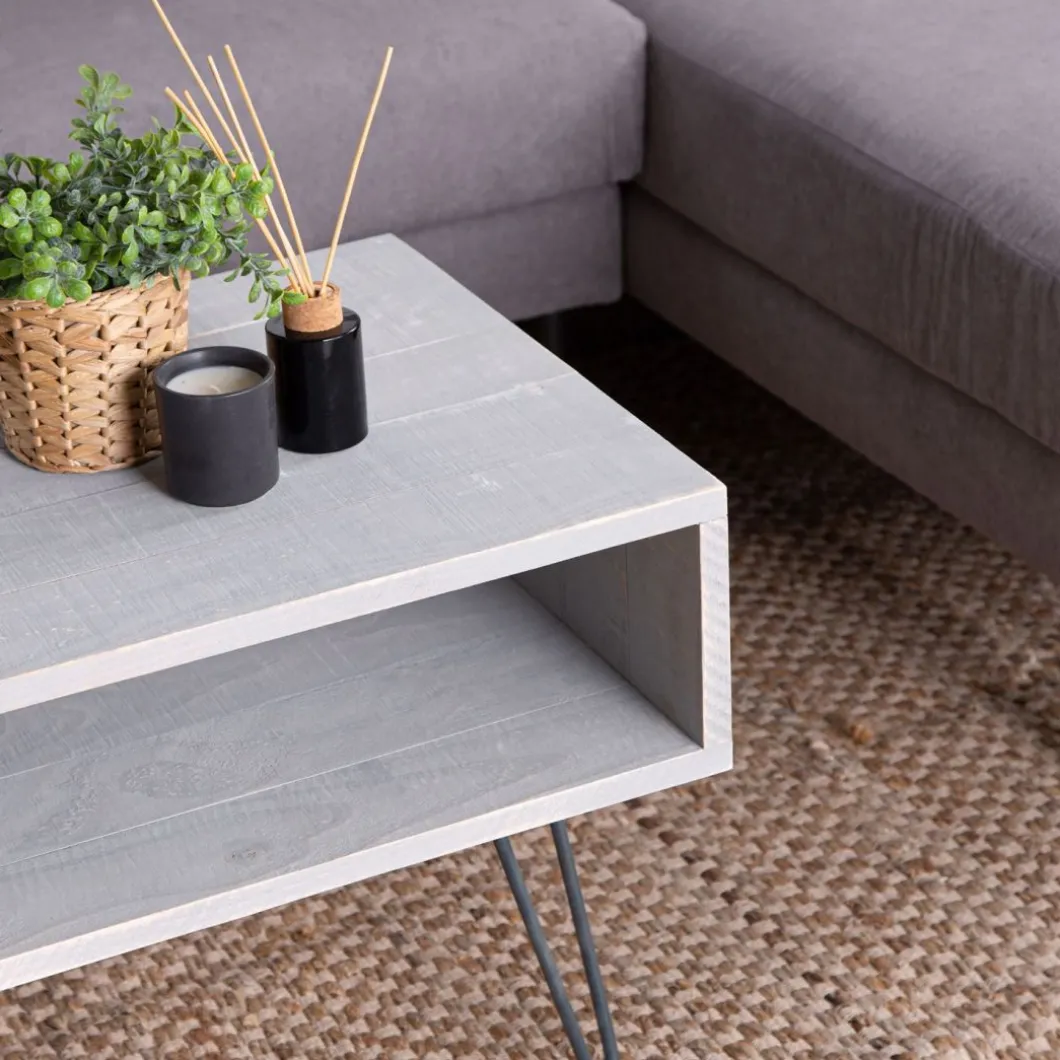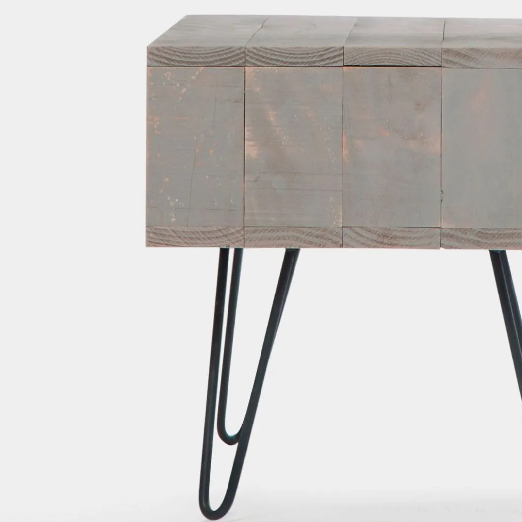 La mesa de centro rectangular Brena fabricada en madera reciclada representa con personalidad el upcycling, que consiste en dar una nueva vida a los materiales. De estilo industrial, con patas metálicas y sobre de madera reciclada, testimonio del pasado y que aporta encanto a la colección. Está fabricada de forma artesanal, con un diseño propio y está disponible en varios colores y formas.Su cajón abierto permite almacenar lo que desees de una forma ordenada.Por supuesto, te invitamos a visitar el resto de la colección.