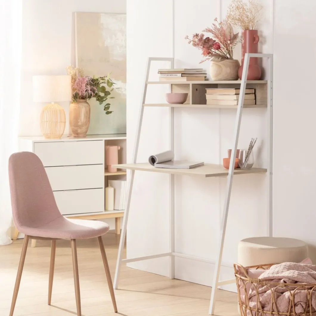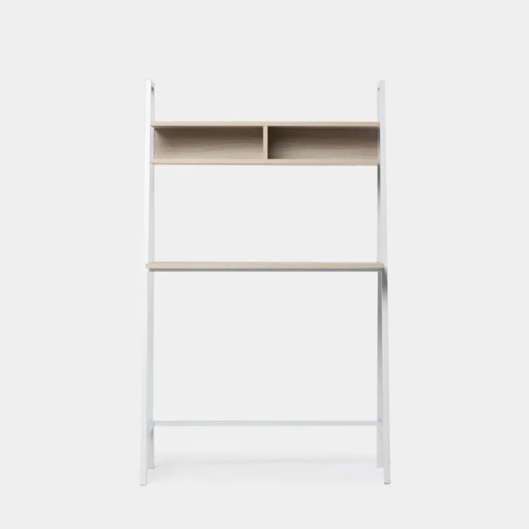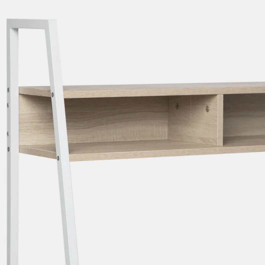Apuesta por el escritorio Clerk en acabado natural y estructura blanca. Su estante superior lo hace muy funcional y estético. Te permite almacenar de una forma ordenada aquello que necesites o incluso poner accesorios decorativos para darle el toque deco que necesitas. Con inspiración industrial esta mesa de estudio y/o trabajo será la pieza que necesitas en tu oficina o dormitorio.