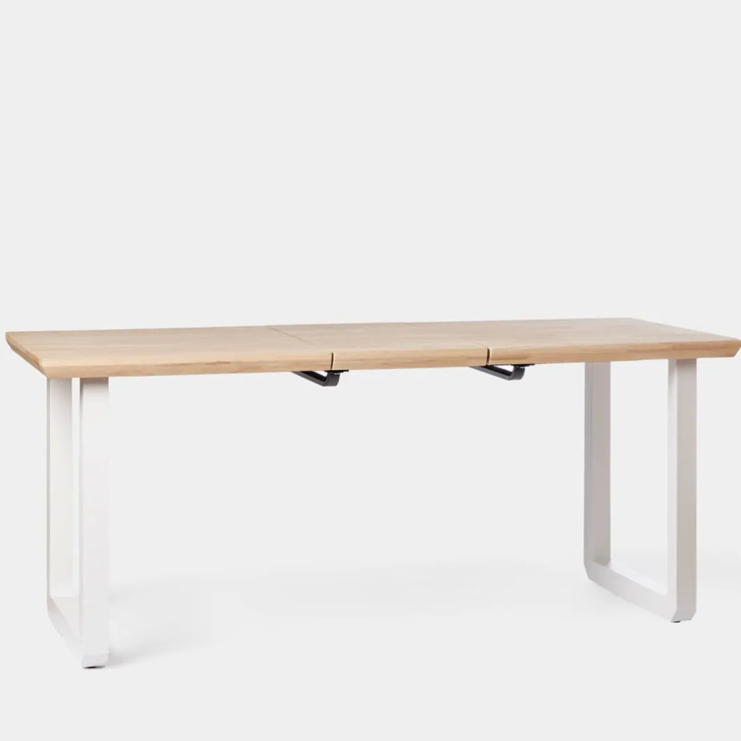 La mesa de comedor rectangular extensbile 140/220 Conor en madera de roble con pata metálica blanca es ideal para completar tu comedor o cocina. Cuenta con un sistema extensible de dos tramos con el que podrás ampliar sus medidas a 180 o 220 sin esfuerzo, pasando de una mesa de 6 comensales a una de 8 en cuestión de segundos. Disponible en varios acabados.