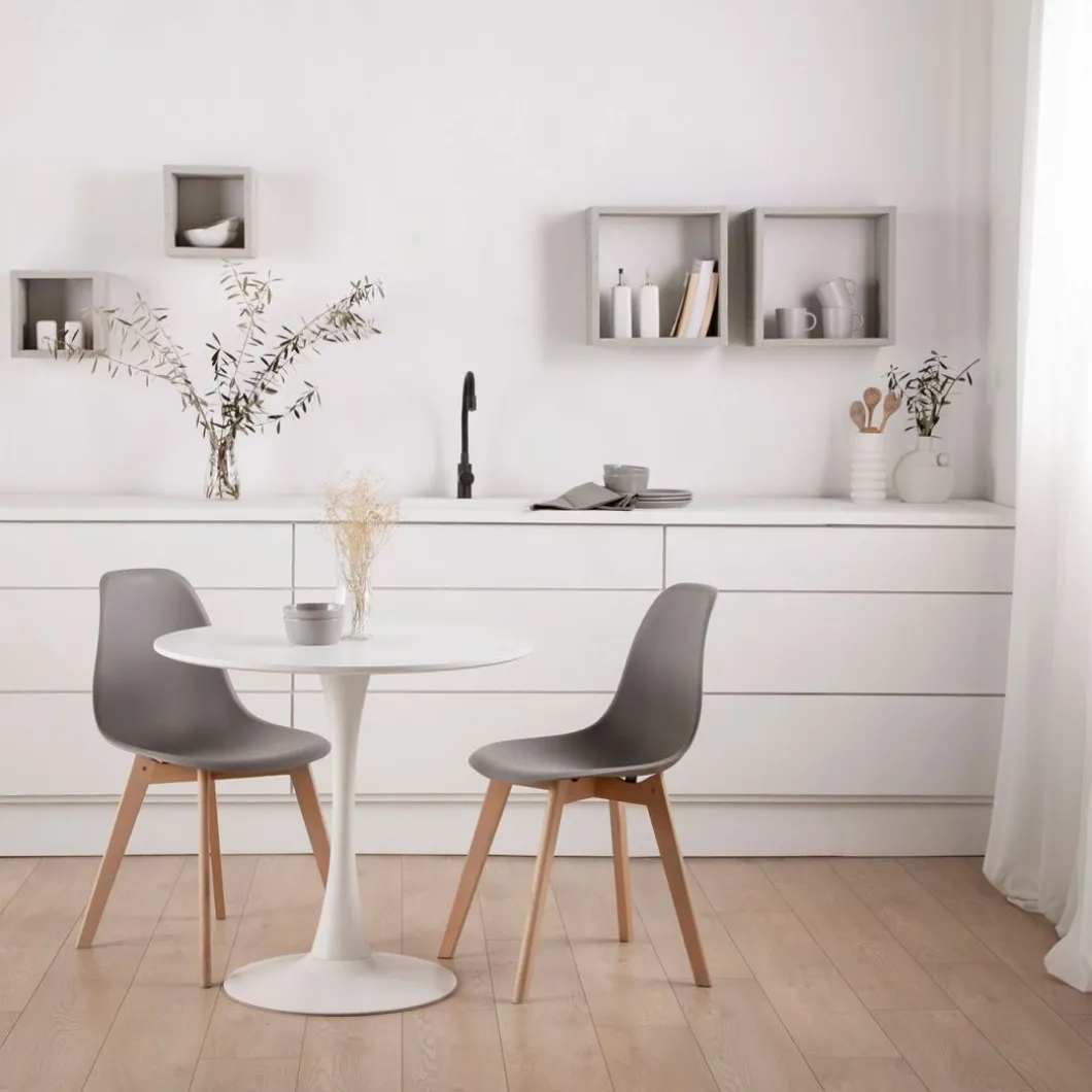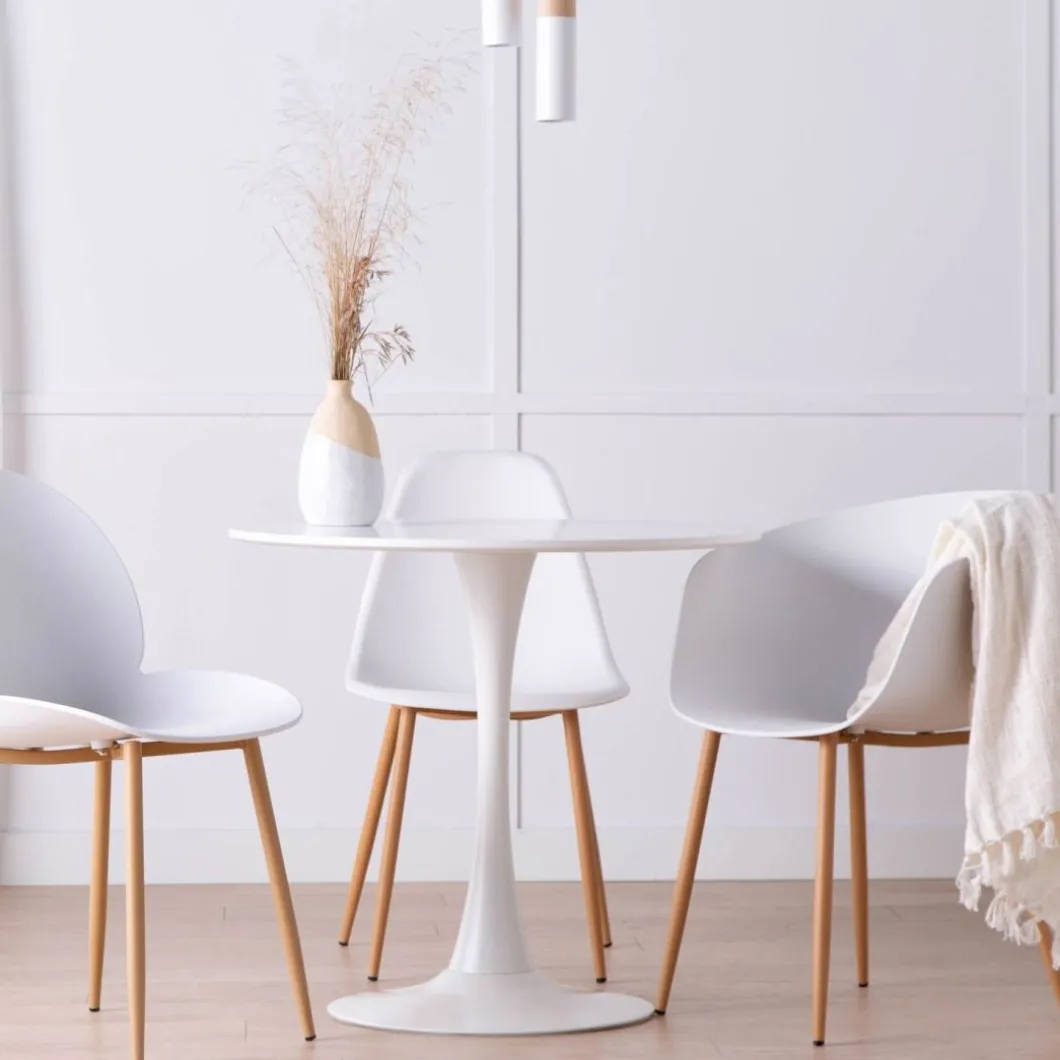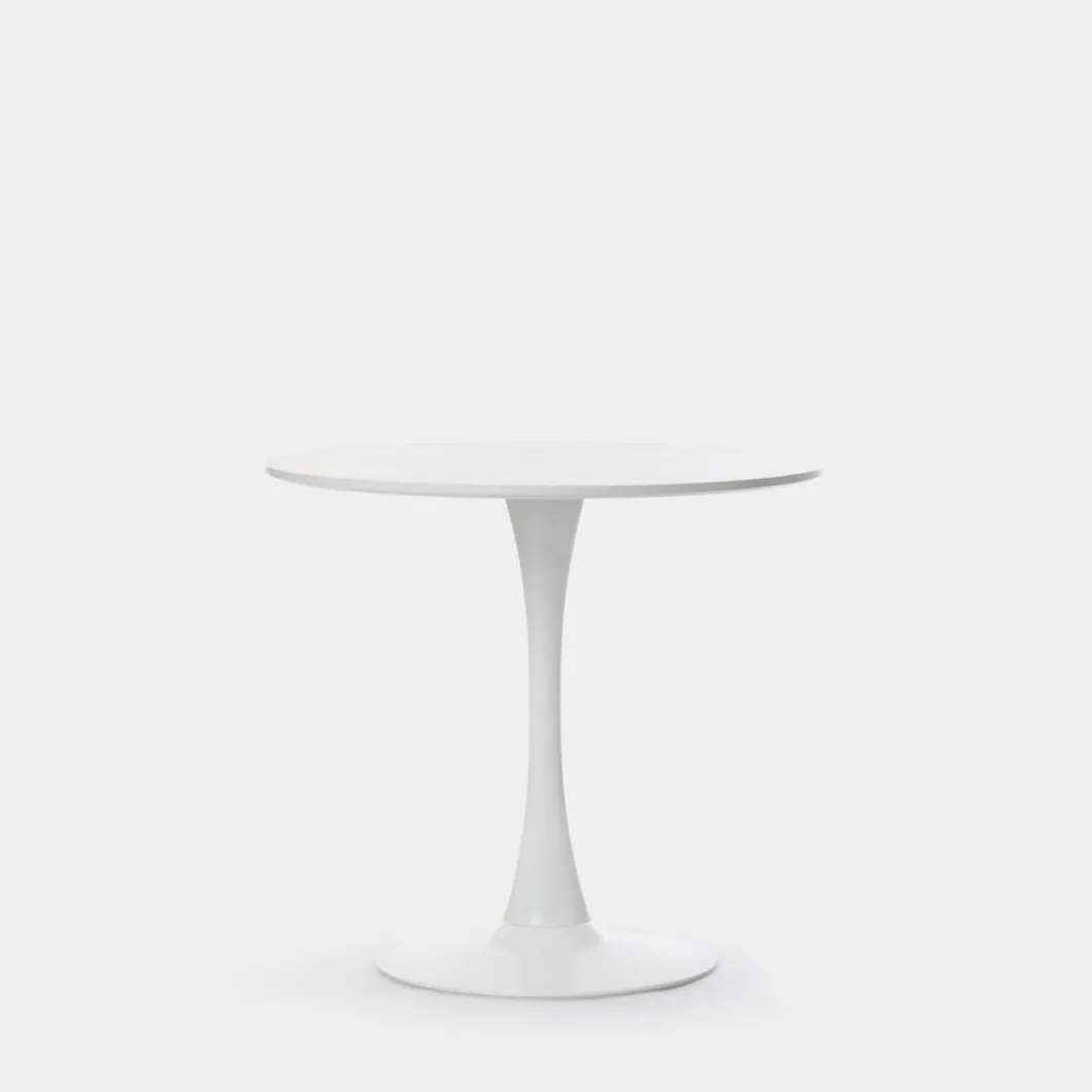 La mesa de comedor redonda Cory es de estilo vintage, aunque al ser un diseño emblemático se convierte en una pieza puramente contemporánea y moderna. Sus curvas retro, líneas depuradas y su acabado blanco aportan luminosidad y amplitud. Su pata en forma de tulipa central, hace que todas las sillas quepan con fluidez. Es apta para 4 comensales por lo que podrás vivirla y compartila con familiares y amigos en tu salón comedor, en la cocina, en tu bar o restaurante o incluso en la oficina como mesa de reuniones circular. Su reducido tamaño la hace una pieza multifuncional.