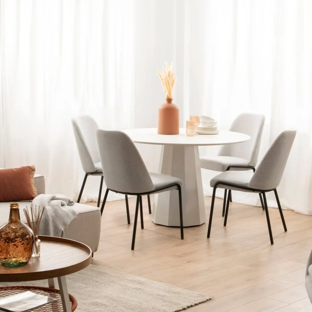 Eleva el estilo y la comodidad de tu hogar con la silla de comedor Deli. Su tapizado gris y sus patas metálicas negras añaden un toque de sofisticación y modernidad a cualquier espacio. Disponible en varios acabados, elige el que mejor se adapte a tu estilo decorativo.
