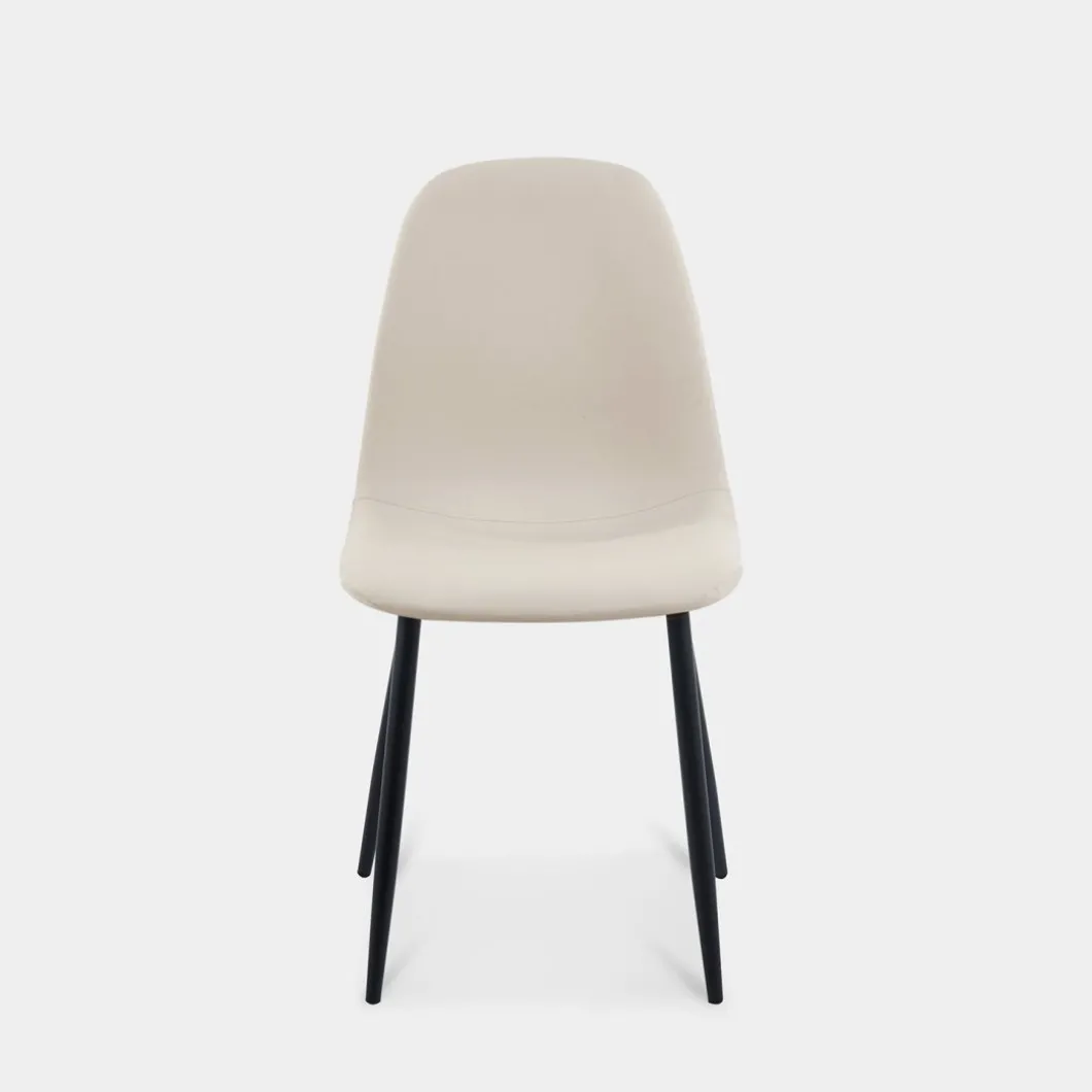 ¡Aprovéchate de este pack! La silla de comedor Elia, tapizada en sofisticada polipiel beige y con patas metálicas negras, es la elección perfecta para completar tu hogar. Su diseño sencillo y minimalista aporta un toque de elegancia a cualquier espacio. Gracias a su ergonomía, es ideal tanto para el comedor como para el escritorio, garantizando comodidad y estilo. Disponible en una variedad de tapizados, escoge el que mejor encaje con tu estilo.