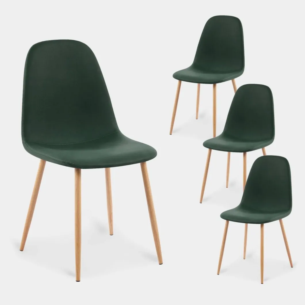 ¡Aprovéchate de este pack! La silla de comedor Elia, tapizada en sofisticada polipiel verde y con patas metálicas efecto madera, es la elección perfecta para completar tu hogar. Su diseño sencillo y minimalista aporta un toque de elegancia a cualquier espacio. Gracias a su ergonomía, es ideal tanto para el comedor como para el escritorio, garantizando comodidad y estilo. Disponible en una variedad de tapizados, escoge el que mejor encaje con tu estilo.