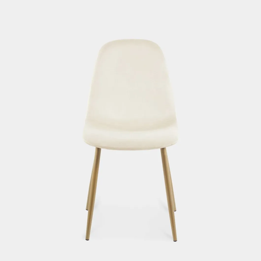 ¡Aprovéchate de este pack! La silla de comedor Elia, tapizada en un sofisticado terciopelo beige y con patas metálicas doradas, es la elección perfecta para completar tu hogar. Su diseño sencillo y minimalista aporta un toque de elegancia a cualquier espacio. Gracias a su ergonomía, es ideal tanto para el comedor como para el escritorio, garantizando comodidad y estilo. Disponible en una variedad de tapizados, escoge el que mejor encaje con tu estilo.