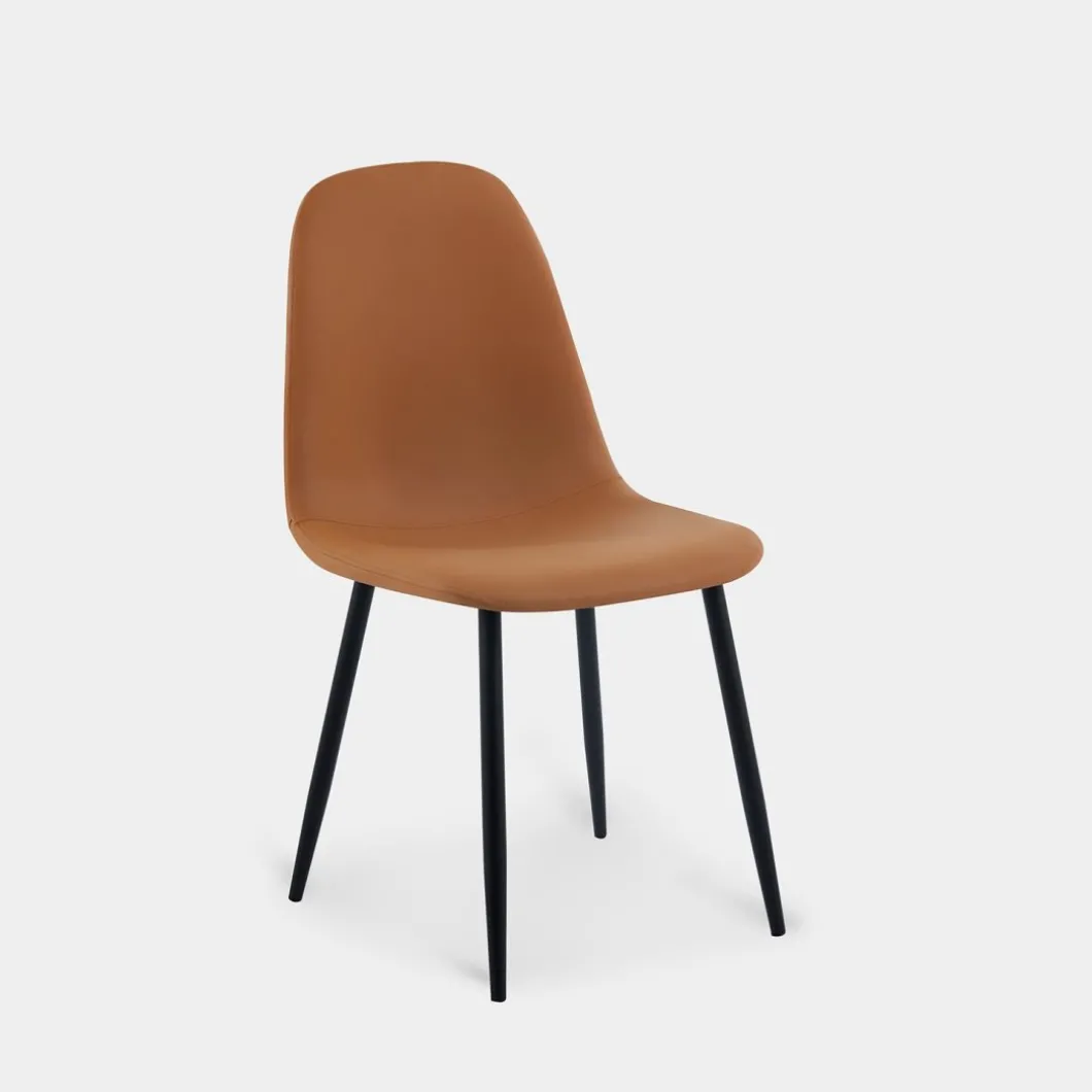 La silla de comedor Elia, tapizada en sofisticada polipiel terracota y con patas metálicas negras, es la elección perfecta para completar tu hogar. Su diseño sencillo y minimalista aporta un toque de elegancia a cualquier espacio. Gracias a su ergonomía, es ideal tanto para el comedor como para el escritorio, garantizando comodidad y estilo. Disponible en una variedad de tapizados, escoge el que mejor encaje con tu estilo.