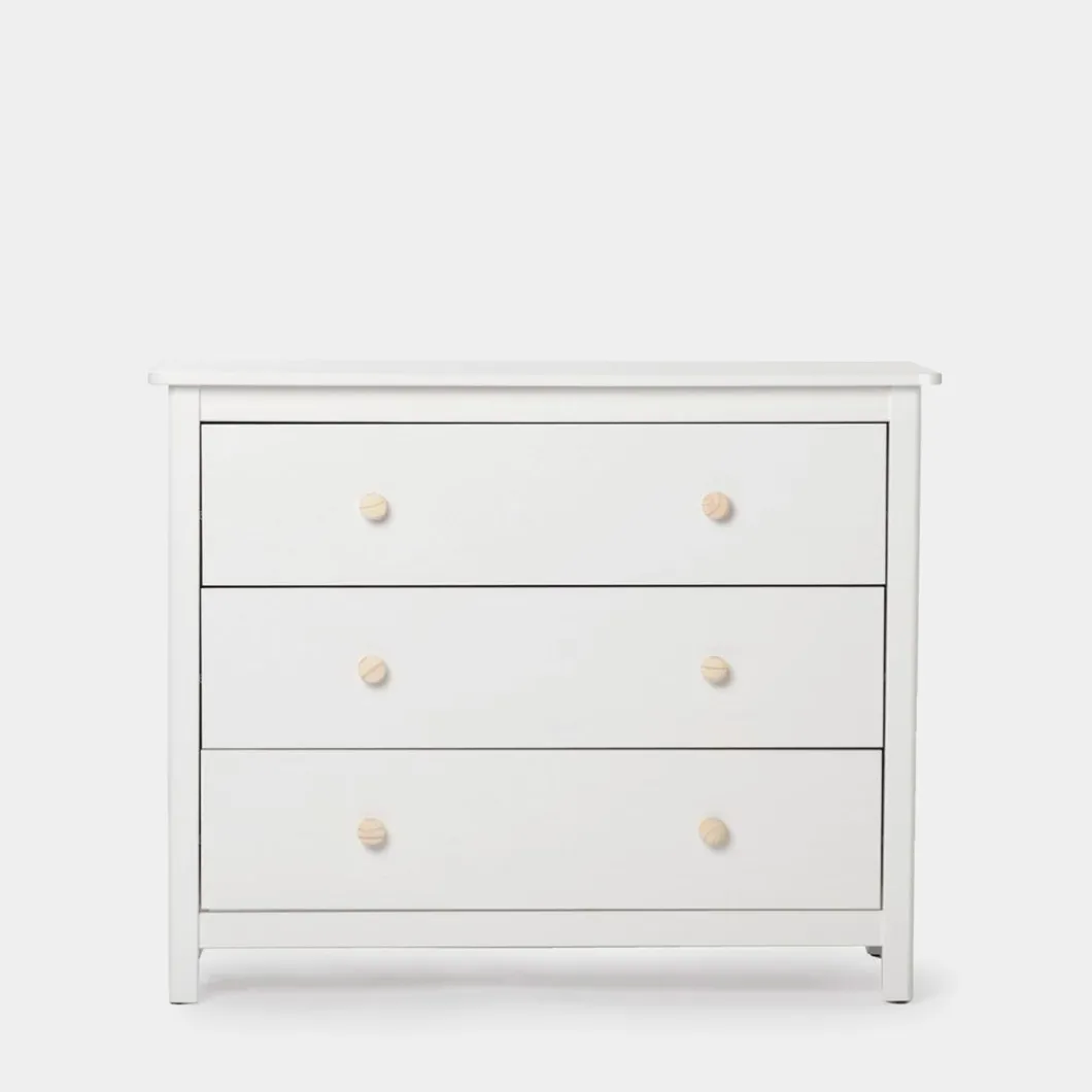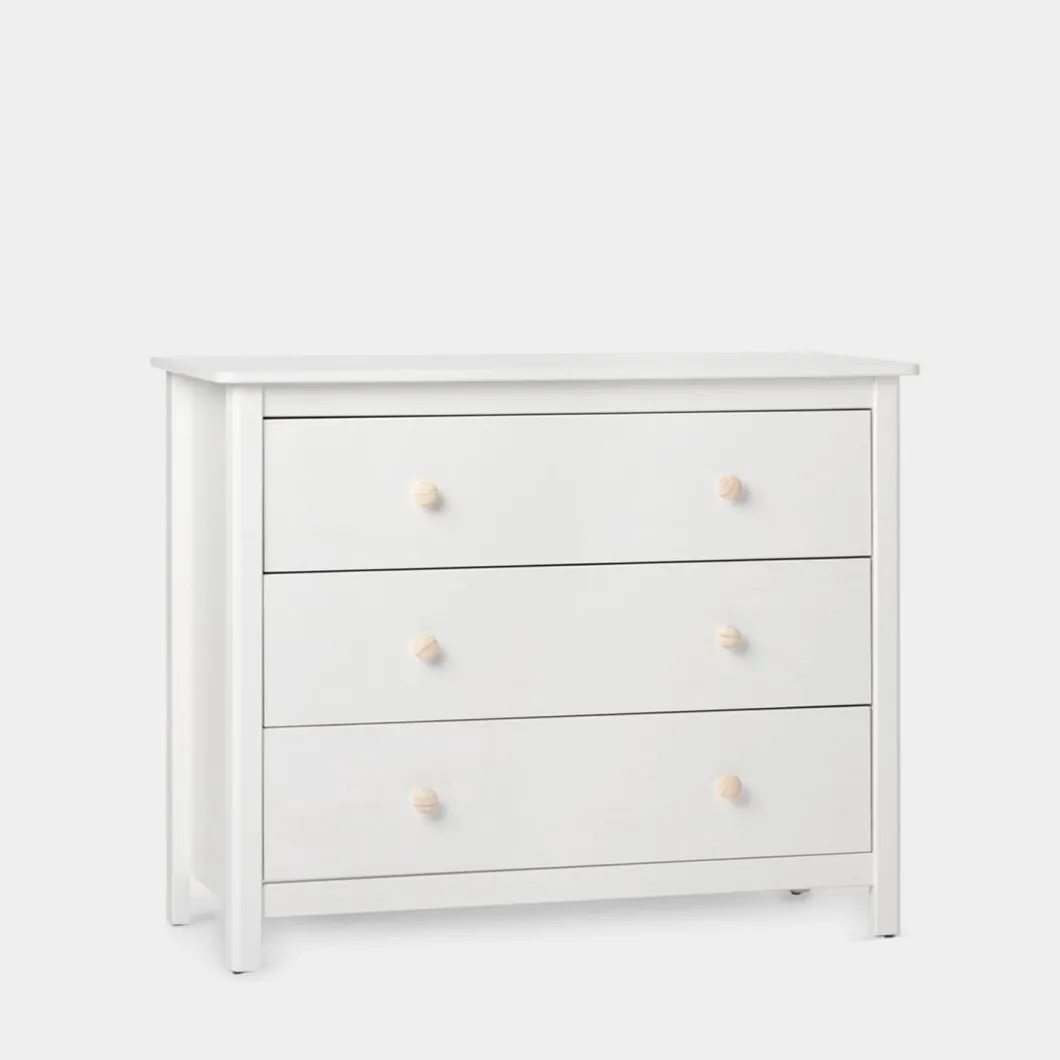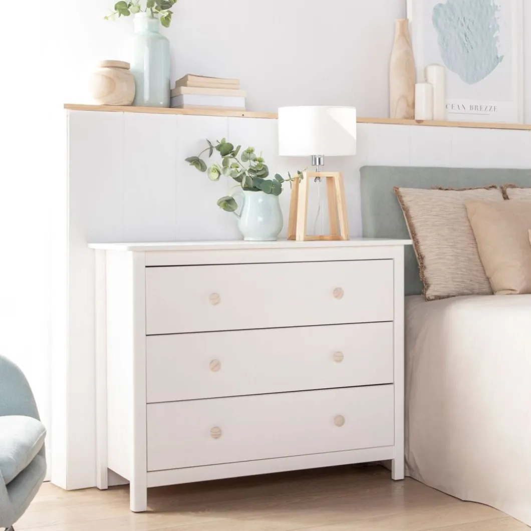 La cómoda lacada en blanco Eloise es el básico perfecto para tu dormitorio. Cuenta con tres cajones de gran capacidad que te ayudan a organizar y almacenar todas tus pertenencias. Incluye dos tipos de tiradores para que puedas intercambiarlos, ¡escoge el que más te guste!