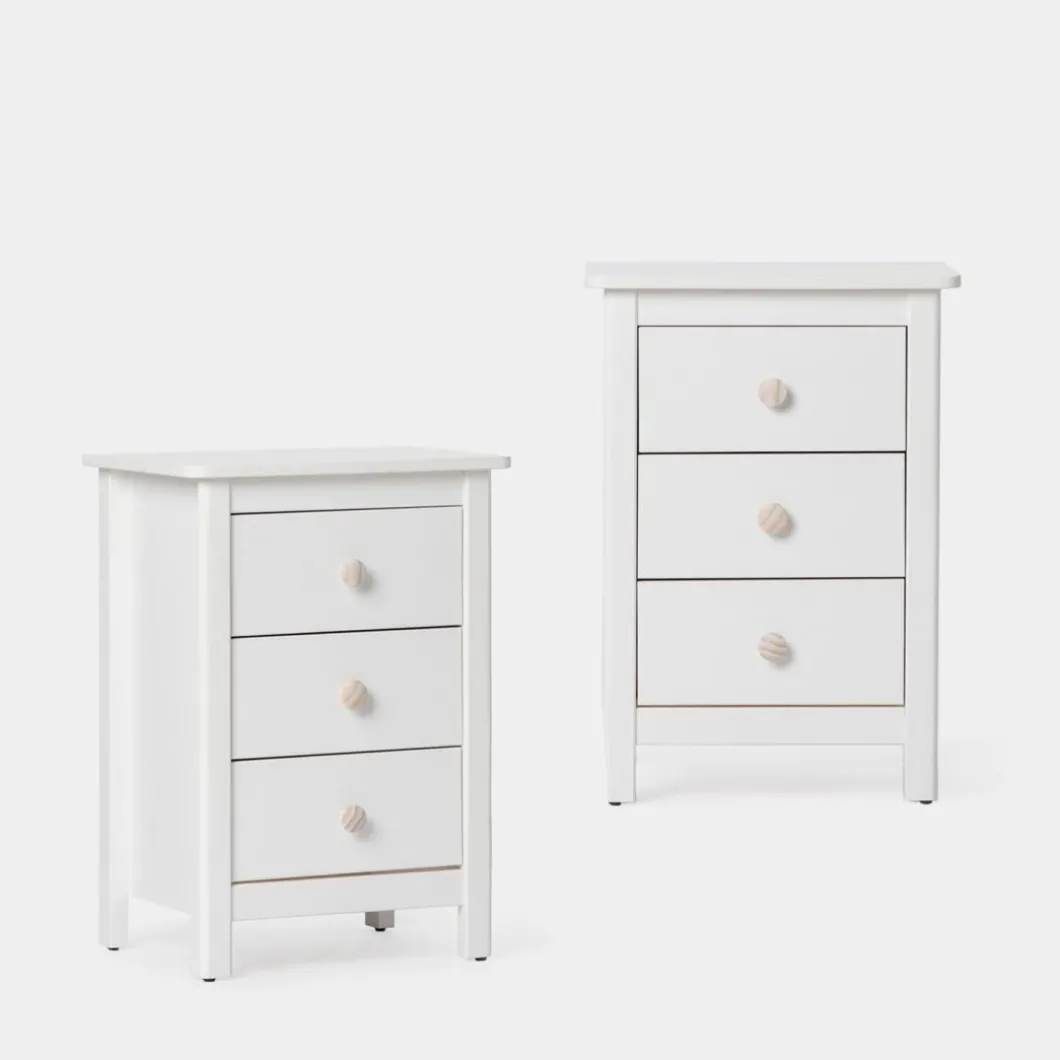 ¡Aprovéchate de este pack de 2 mesitas! La mesita de noche lacada en blanco Eloise es un básico para tu dormitorio. Sus tres cajones de gran capacidad te ayudarán a organizar y almacenar tus pertenencias. Incluye dos tipos de tiradores, ¡escoge el que más te guste!