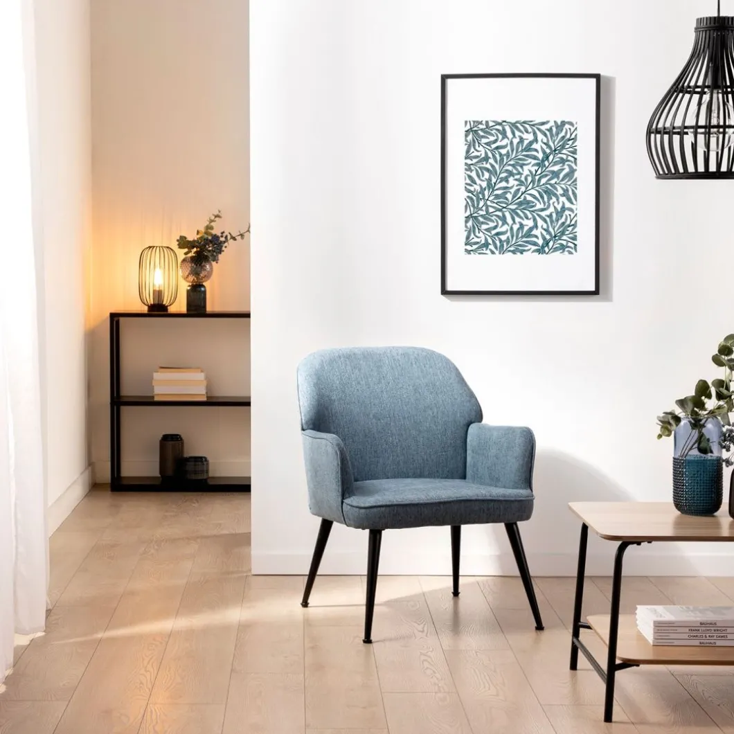 La butaca de lectura Enara en color azul y de diseño nórdico te encantará por su generosa medida de asiento y confortabilidad. Esta butaca de líneas sencillas y elegantes te permite combinarla con todo tipo de estilos. Elige el color que más se ajusta a tus necesidades y date un capricho.