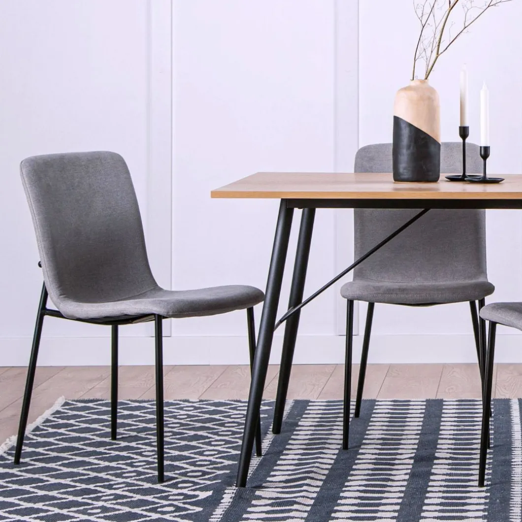 ¡Aprovéchate de este pack! La silla de comedor Eryn en tapizado de poliéster se trata de una gran elección para aquellos que estén buscando un diseño sofisticado y funcional que pueda servir como silla de comedor o de escritorio. Sus patas metálicas negras junto con sus 4 diferentes tonalidades disponibles, le dan ese aire elegante y de tendencia que hará de esta silla la elección preferida para aquellos amantes del estilo industrial o moderno.