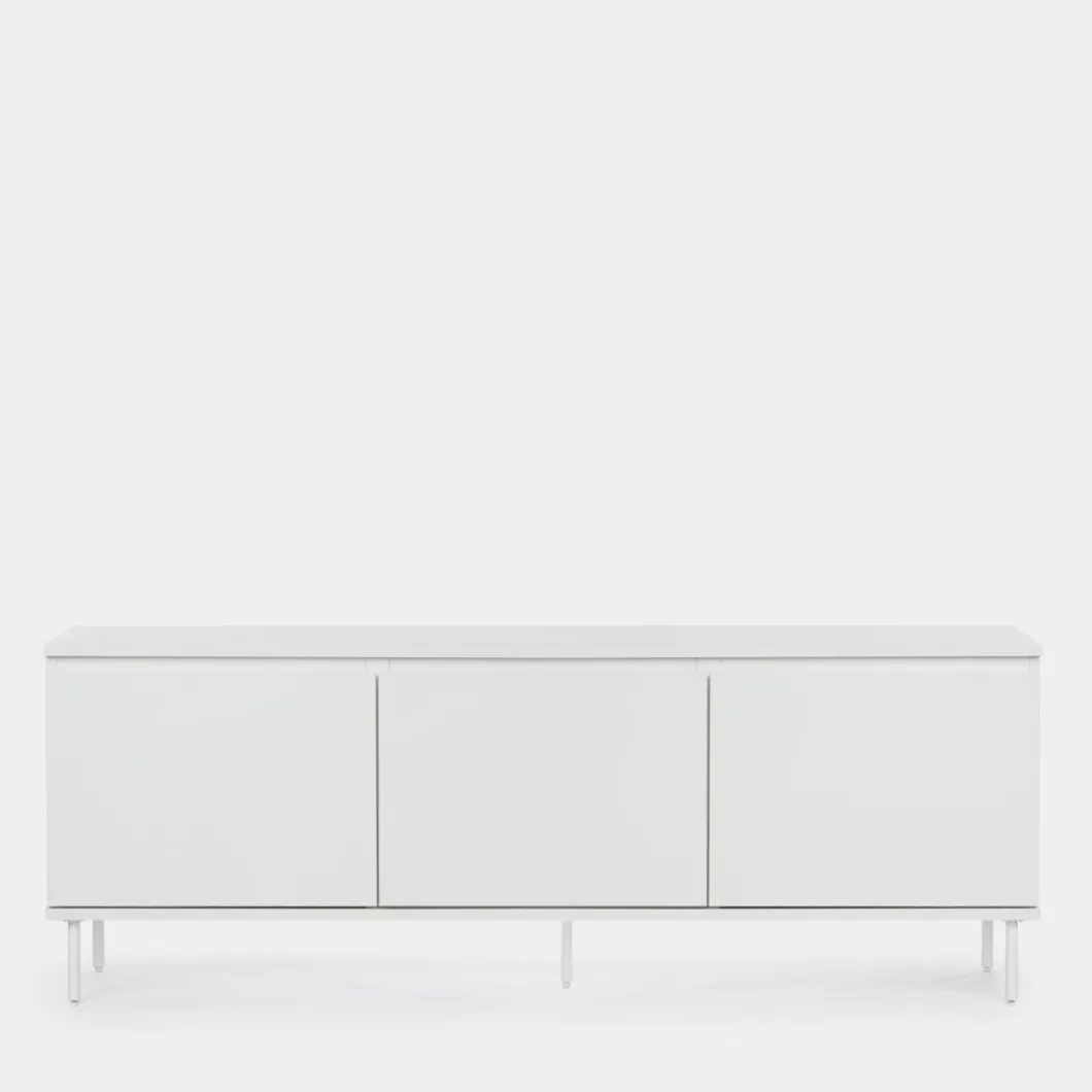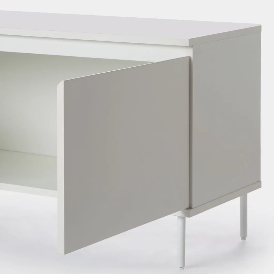 Aporta luminosidad y serenidad a tu hogar con el mueble TV 160 en madera color blanco Esben. Cuenta con tres puertas con tirador uñero integrado que permiten optimizar al máximo el espacio y mantener tus accesorios multimedia bien organizados. Combínalo con otras piezas de la colección y consigue el look completo.