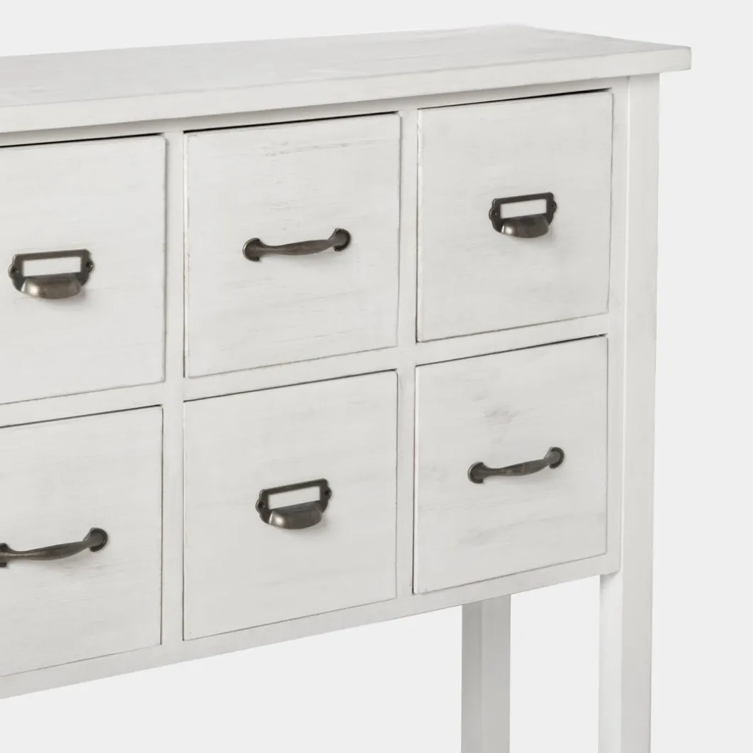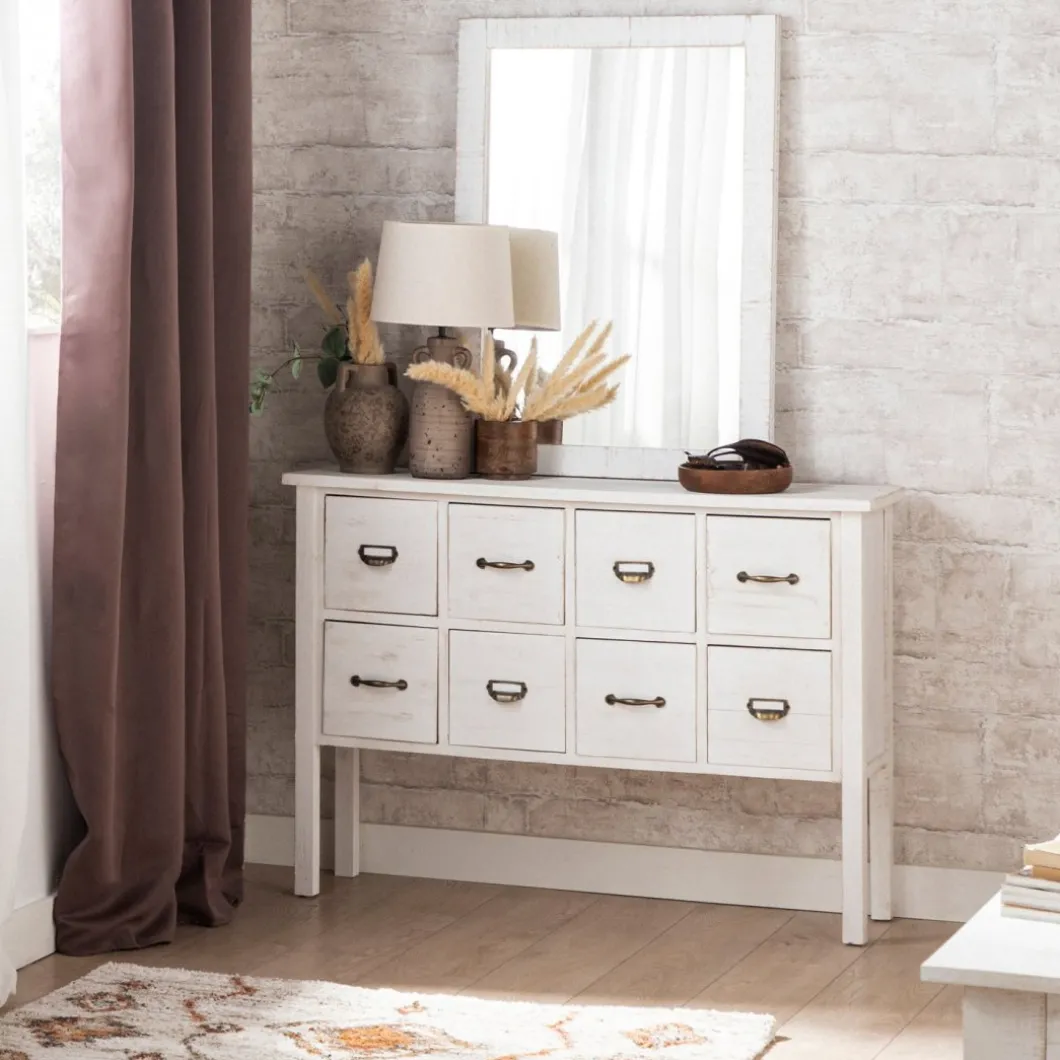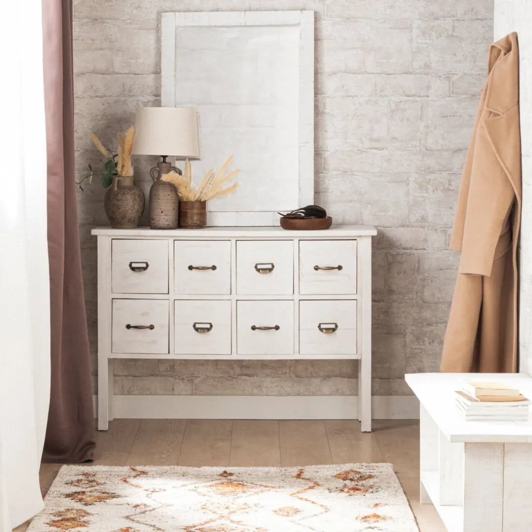 El mueble recibidor Folk, fabricado en madera reciclada libre de tratamientos químicos, fusiona la belleza del estilo natural con la sostenibilidad del upcycling. Cada pieza, elaborada artesanalmente, cuenta una historia única a través de sus imperfecciones y aporta carácter a cualquier estancia. Cuenta con 8 cajones en los que podrás guardar todo lo que desees. El sistema de cierre de cajones es sin guia. Para mayor estabilidad del mueble aconsejamos su anclaje a pared.