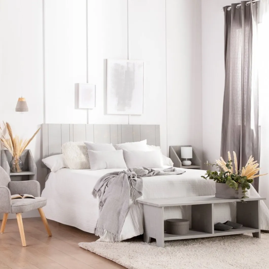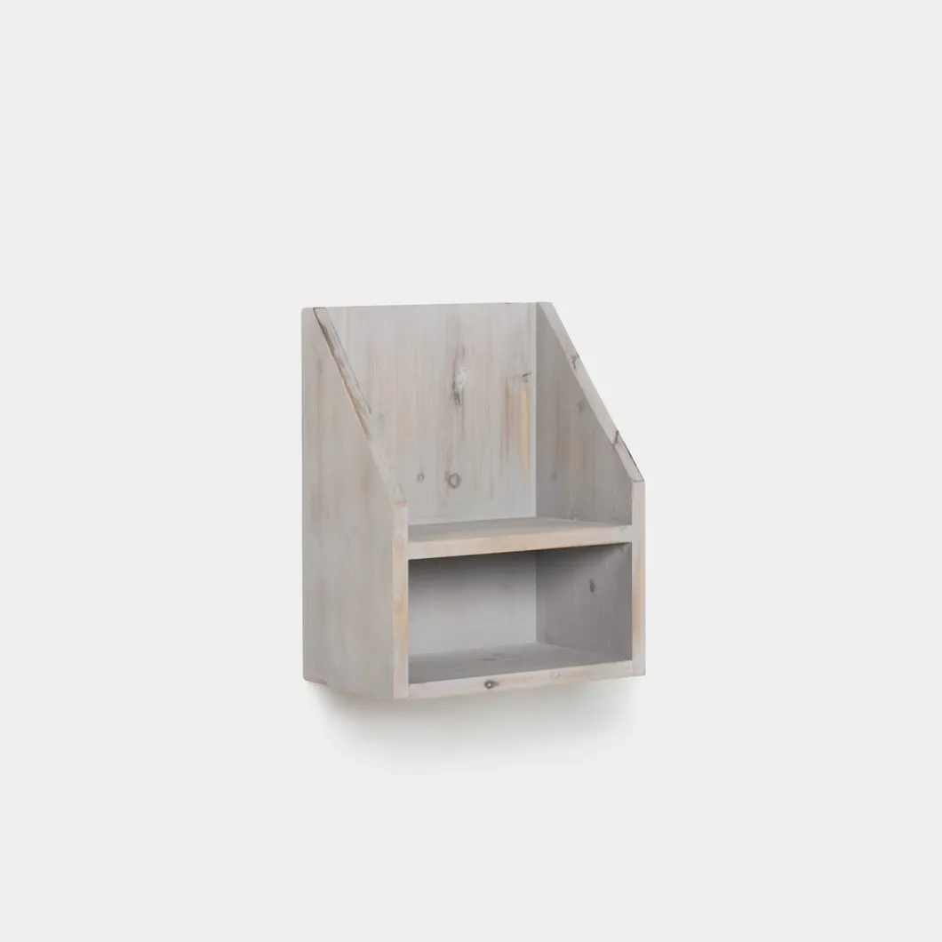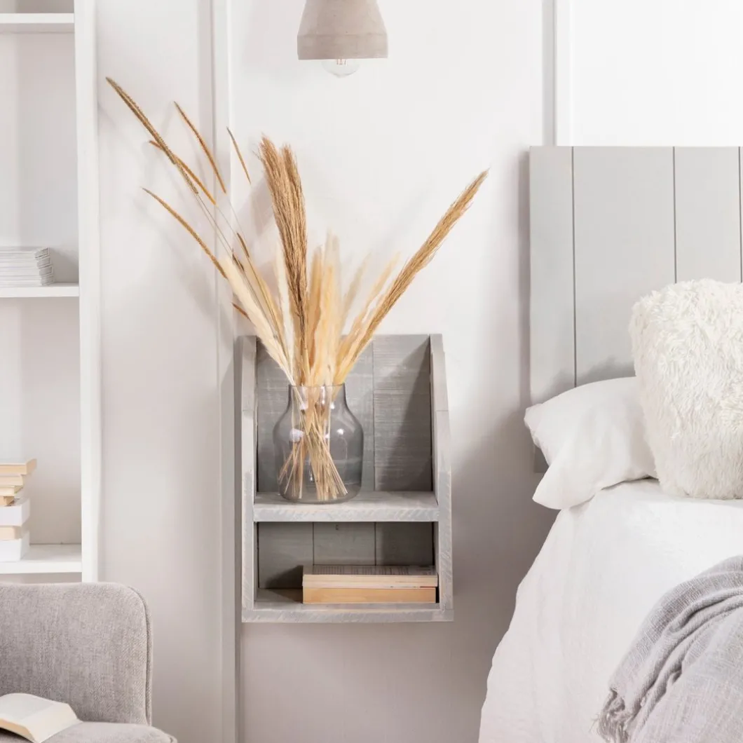 La mesita de noche flotante Folk, fabricada en madera reciclada libre de tratamientos químicos, fusiona la belleza del estilo natural con la sostenibilidad del upcycling. Cada pieza, elaborada artesanalmente, cuenta una historia única a través de sus imperfecciones y aporta carácter al dormitorio. Requiere anclaje a pared.