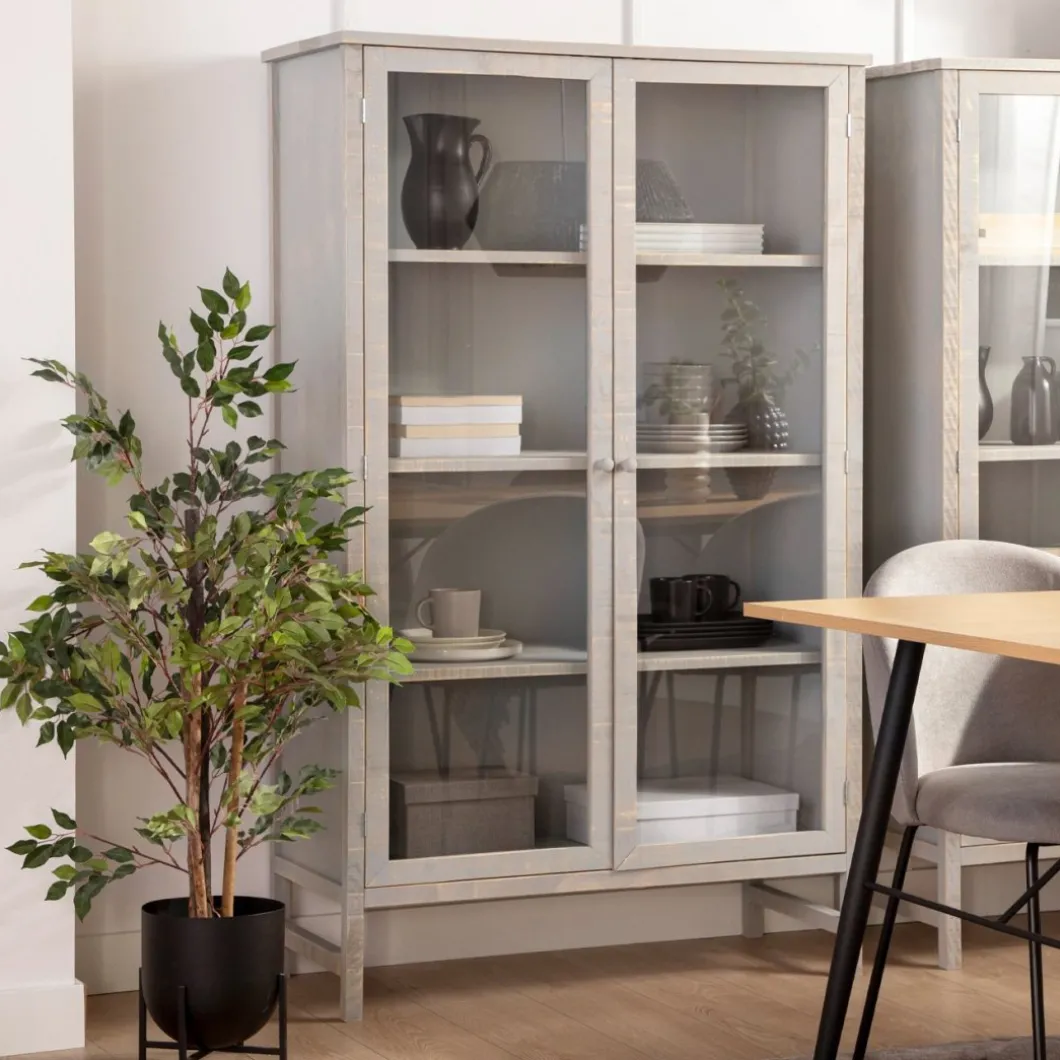 La vitrina Folk, fabricada en madera reciclada libre de tratamientos químicos, fusiona la belleza del estilo natural con la sostenibilidad del upcycling. Cada pieza, elaborada artesanalmente, narra una historia singular a través de sus imperfecciones y aporta carácter a cualquier estancia. Ideal para exhibir tu vajilla con un toque de autenticidad y conciencia ecológica. Para mayor estabilidad del mueble, aconsejamos su anclaje a la pared.