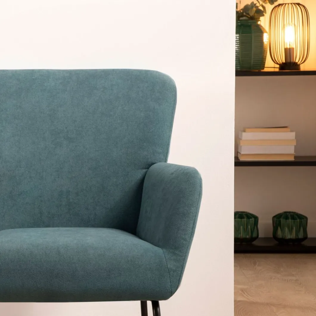La butaca de lectura Gala en color azul turquesa no pasa desapercibida. Destaca en cualquier lugar donde decidas colocarla ya sea en el salón, en tu dormitorio o en el recibidor de tu casa. Es muy cómoda por lo que será tu compañera perfecta para esos momentos de lectura, relax o para ver tu serie favorita.