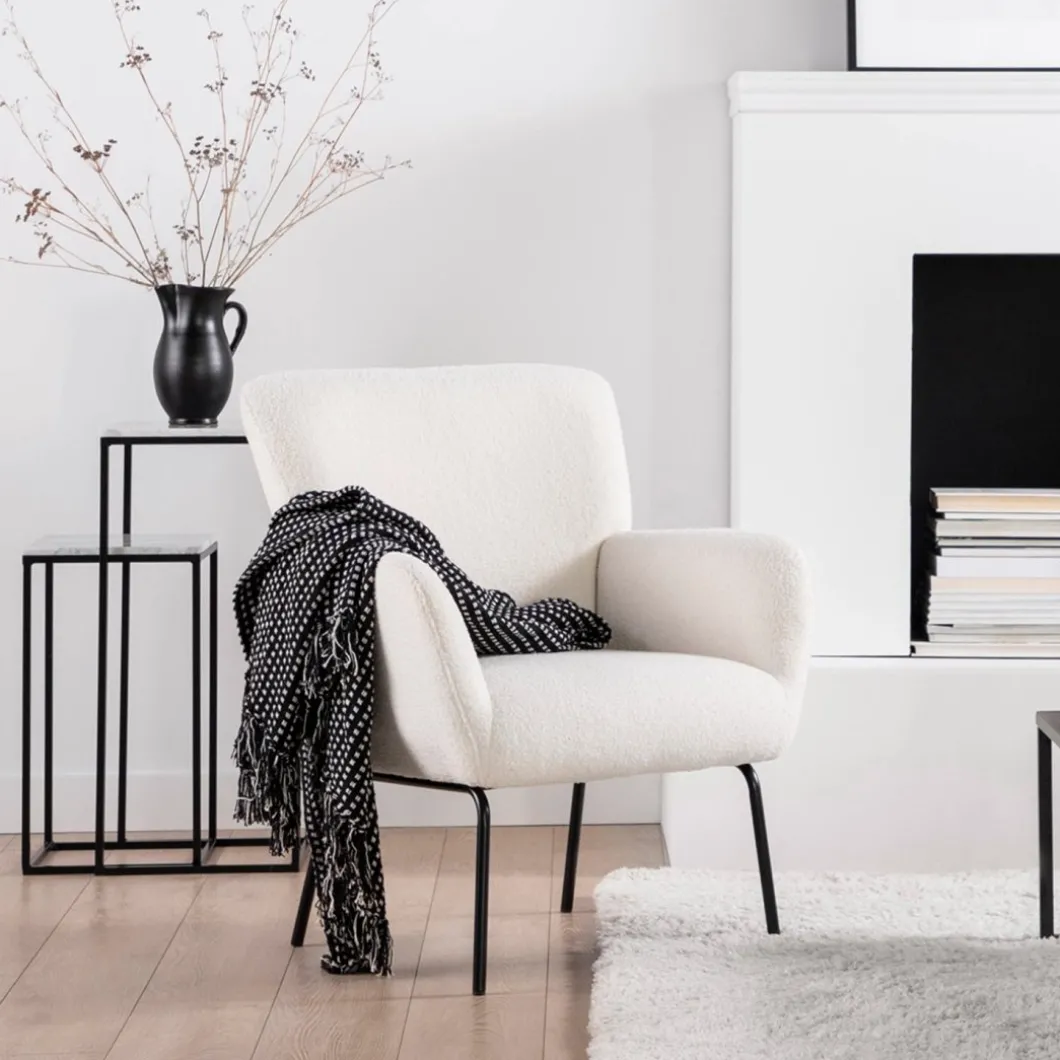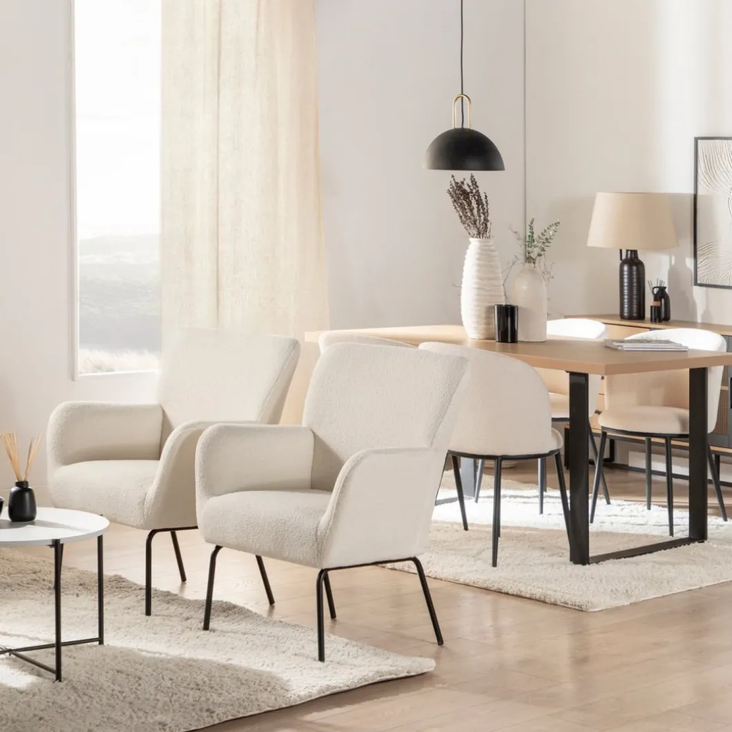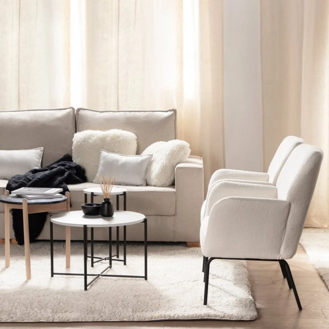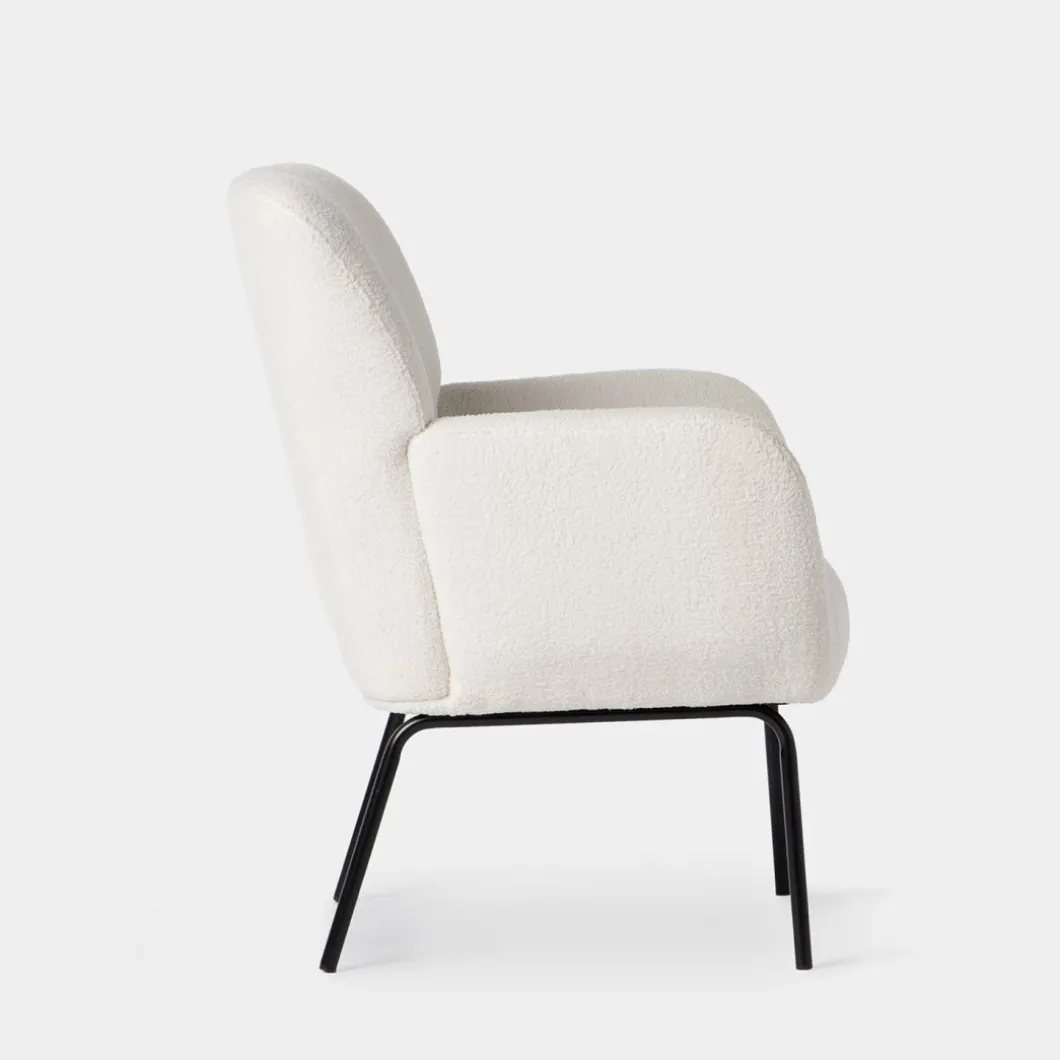 La butaca de lectura Gala en color blanco no pasa desapercibida. Su tejido de borreguito la hace destacar en cualquier lugar donde decidas colocarla ya sea en el salón, en tu dormitorio o en el recibidor de tu casa. Es muy cómoda por lo que será tu compañera perfecta para esos momentos de lectura, relax o para ver tu serie favorita.