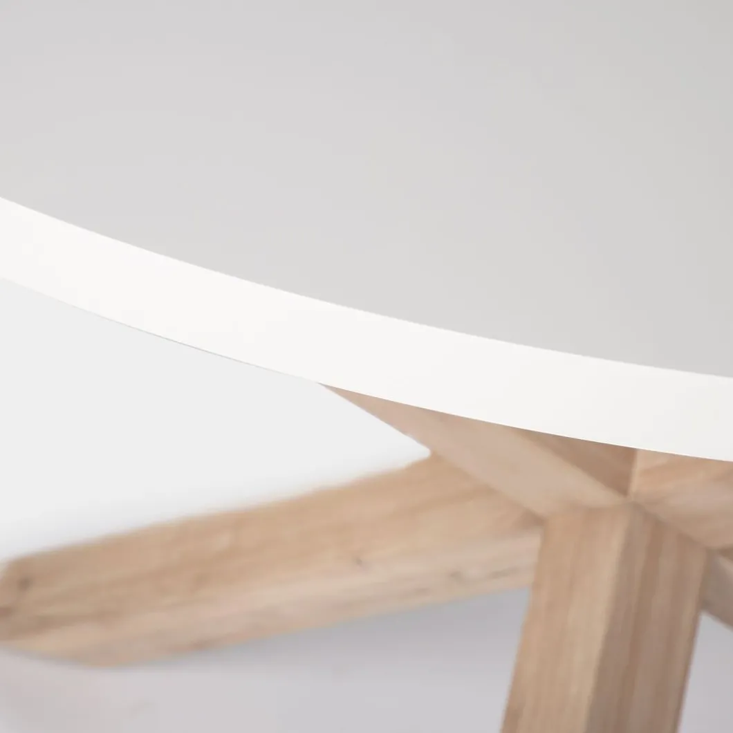 La mesa de comedor redonda Isak es la mesa ideal con la que completar tu salón, comedor o cocina. Su sobre blanco y su estructura de madera maciza natural aportan calidez y frescura a la estancia. Es apta para reunir hasta 6 comensales. También está disponible en acabado natural, escoge el que más te guste.