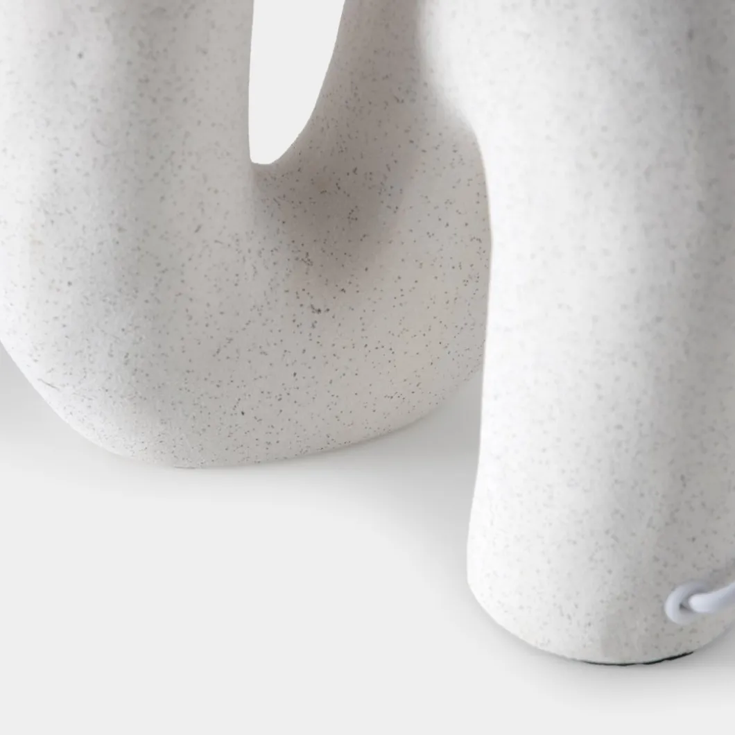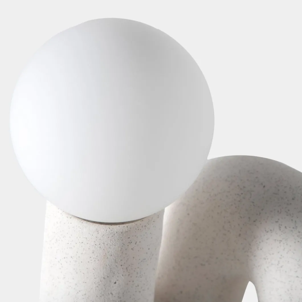 La lámpara de mesa Isu es una pieza única que combina diseño contemporáneo y funcionalidad. Fabricada en material cerámico, su base presenta líneas suaves y fluidas que aportan un toque artístico y moderno a cualquier espacio. La tulipa de cristal opaco difunde una luz cálida y acogedora, creando un ambiente relajante ideal para salas de estar, dormitorios o rincones de lectura. No incluye bombilla.