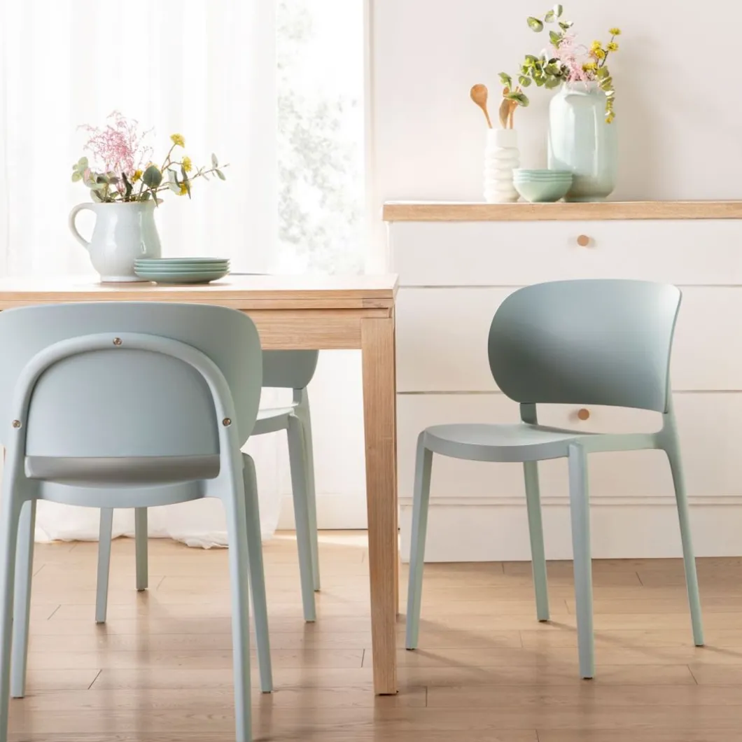 ¡Aprovéchate de este pack! La silla de comedor Jana es un diseño elegante con líneas estilizadas de aire vintage fabricada en polipropileno, por lo que es una opción perfecta para colocar allá donde la necesites, ya sea en tu cocina, como silla de escritorio o en tu jardín o balcón. Elige cualquiera de los 3 colores disponibles en nuestra web y combínalas a tu gusto. Para mayor durabilidad de la silla, aconsejamos que se evite la exposición de la misma a fenómenos meteorológicos.