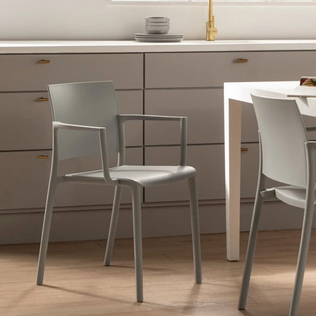 La silla de comedor Jeven se trata de la mejor opción para los amantes del diseños modernos y minimalista. Su acabado en polipropileno con reposabrazos la convierte también en una alternativa perfecta para tu jardín o balcón. Con toda su estructura fabricada en un mismo color, puedes combinarlas como más te guste eligiendo entre las 3 tonalidades disponibles en nuestra web. Para mayor durabilidad de la silla, aconsejamos que se evite la exposición de la misma a fenómenos meteorológicos.