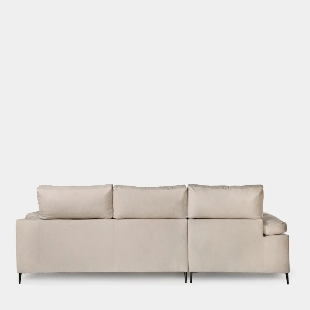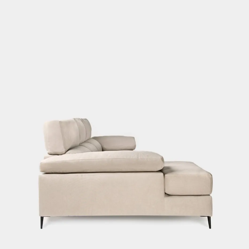 El sofá chaise longue tres plazas Keira en color beige será el protagonista indiscutible de tu salón. Es un sofá muy cómodo y completo ya que cuenta con cabezales reclinables, asientos deslizantes y tiene un arcón que te permitirá almacenar y tenerlo todo ordenado. También está disponible en color topo. La chaise longue, al mirar de frente el sofá, queda ubicada a la izquierda.