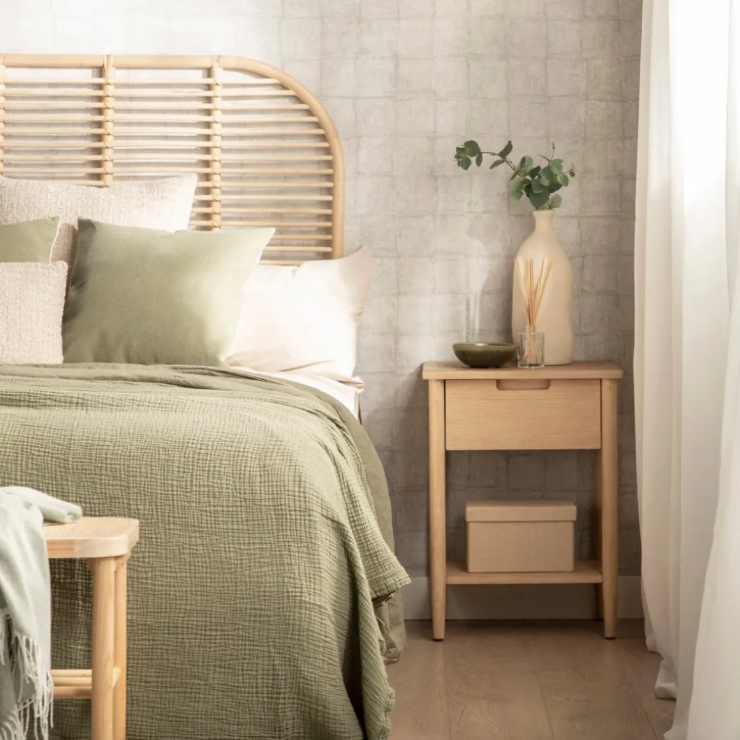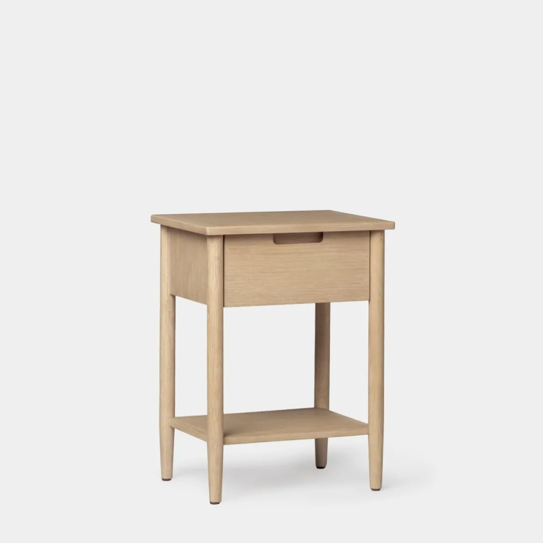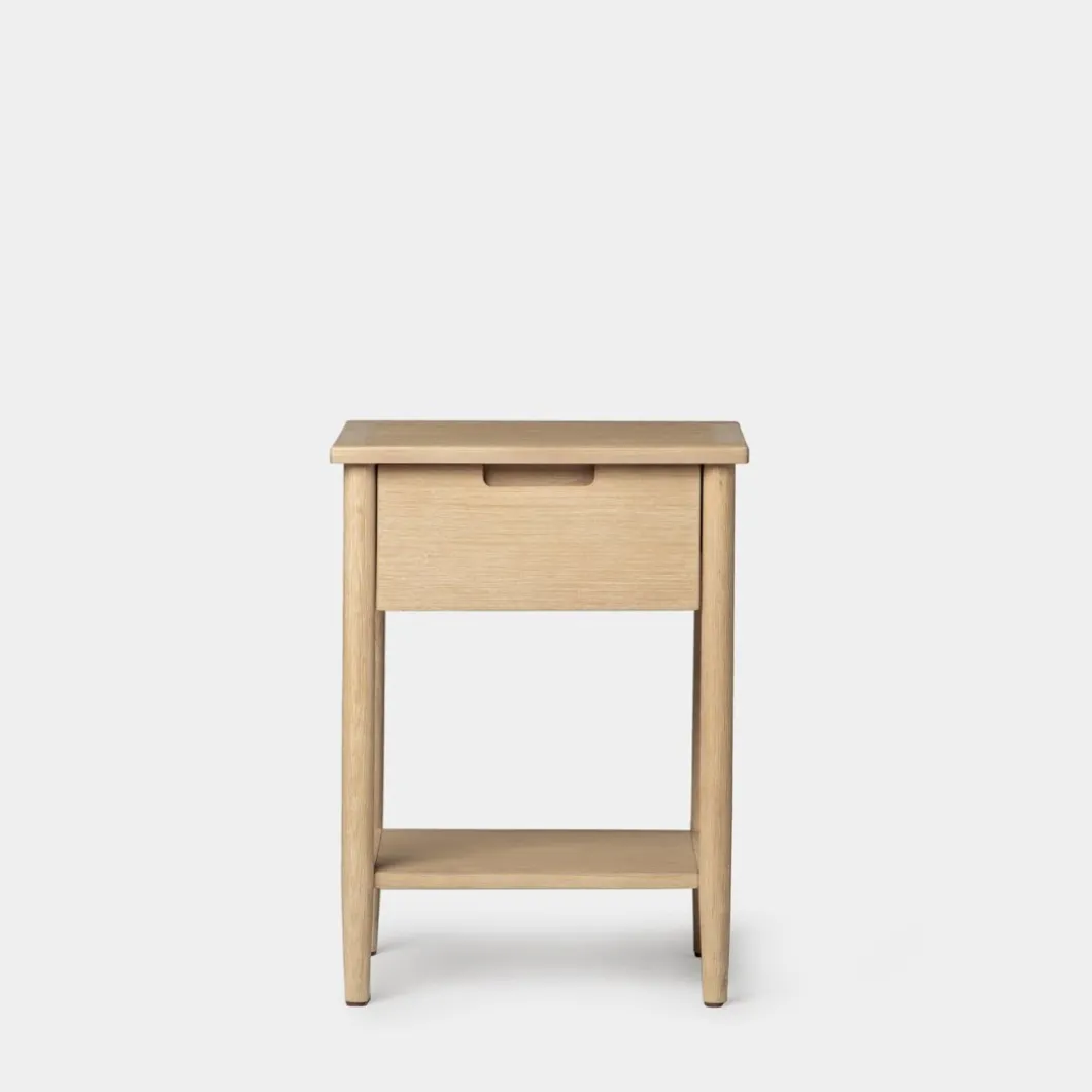 La mesita de noche Kenan en chapa de pino y madera de abedul es la pieza ideal para completar la decoración de tu dormitorio. Cuenta con un cajón y un práctico estante inferior en el que podrás dejar todo lo que quieras tener a mano. Su estilo minimalista se adapta con armonía a una variedad de estilos decorativos y aporta luminosidad y orden al dormitorio. También está disponible en blanco. ¡Elige el acabado que mejor se ajuste a tus preferencias!
