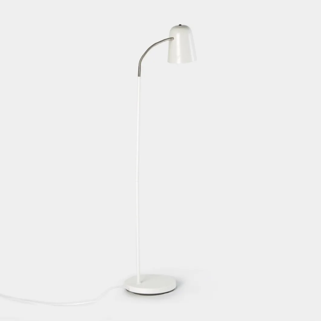 La lámpara de pie Kiva es una luminaria de estilo nórdico fabricada en metal que asegura una distribución uniforme de la luz. Su color blanco garantiza que se pueda combinar con cualquier mueble y elemento de tu hogar. Y si la prefieres en gris también la tienes disponible.No incluye bombilla.