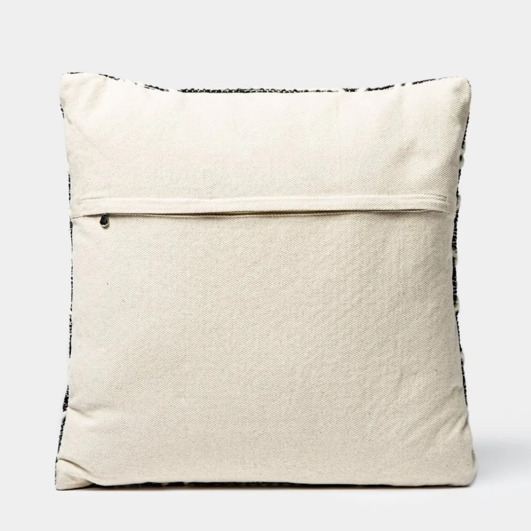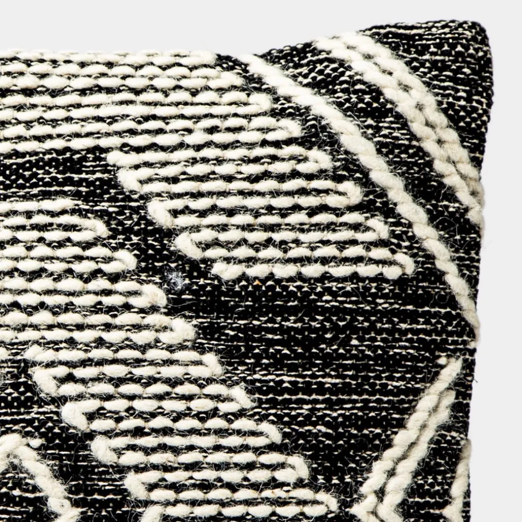 El cojín para sofá Kude dará un toque de naturalidad a tu decoración gracias a su tejido bordado con motivos estampados en blanco y negro. Este cojín será tan popular en una decoración de estilo étnico como en una decoración de estilo escandinavo. Te aconsejamos combinar la colección de cojines Kude en sus dos tamaños y crear una confortable composición en tu sofá. Incluye funda y relleno.
