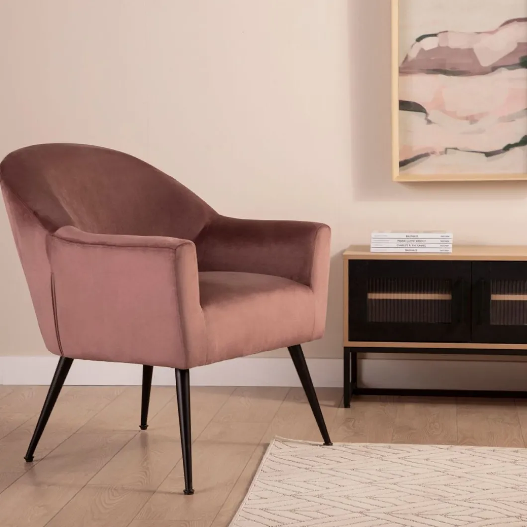 La butaca de lectura Lauren tapizada en terciopelo rosa es el asiento perfecto para completar la zona de salón/comedor. Su asiento, respaldo y reposabrazos amplios la convierten en una butaca ideal para la lectura y el descanso. Está disponible en diferentes tapizados para que puedas escoger el que mejor encaje con tu estilo.