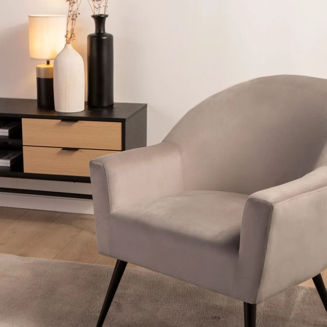 La butaca de lectura Lauren tapizada en terciopelo de color topo es el asiento perfecto para completar la zona de salón/comedor. Su asiento, respaldo y reposabrazos amplios la convierten en una butaca ideal para la lectura y el descanso. Está disponible en diferentes tapizados para que puedas escoger el que mejor encaje con tu estilo.