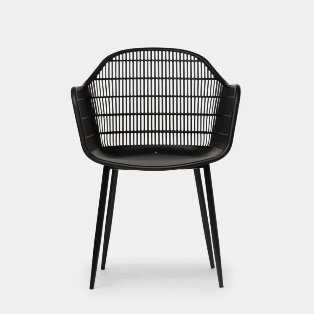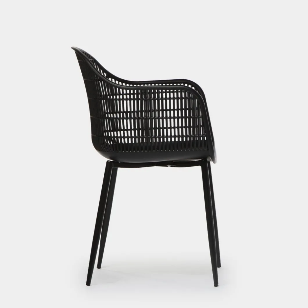 La silla de comedor Layna es la opción perfecta para los que buscan un diseño de tendencia polivalente para interior o exterior. Fabricada en polipropileno con respaldo de rejilla y reposabrazos, esta silla de líneas modernas aportará un toque fresco y original dondequiera que la coloques. Para garantizar su durabilidad, es recomendable evitar la exposición de la silla a condiciones meteorológicas adversas.