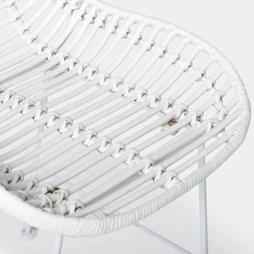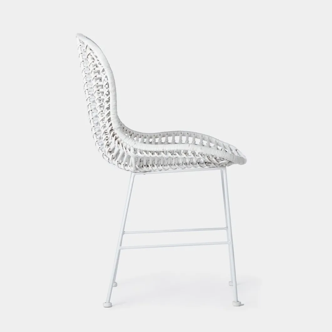 Aporta luminosidad a tu hogar con la silla de comedor Leo, confeccionada en ratán blanco y pata metálica blanca. Su proceso de elaboración artesanal resalta las cualidades naturales del ratán, permitiendo que cada silla exhiba delicadas irregularidades. Cada pieza añade un toque de encanto singular a tu hogar.