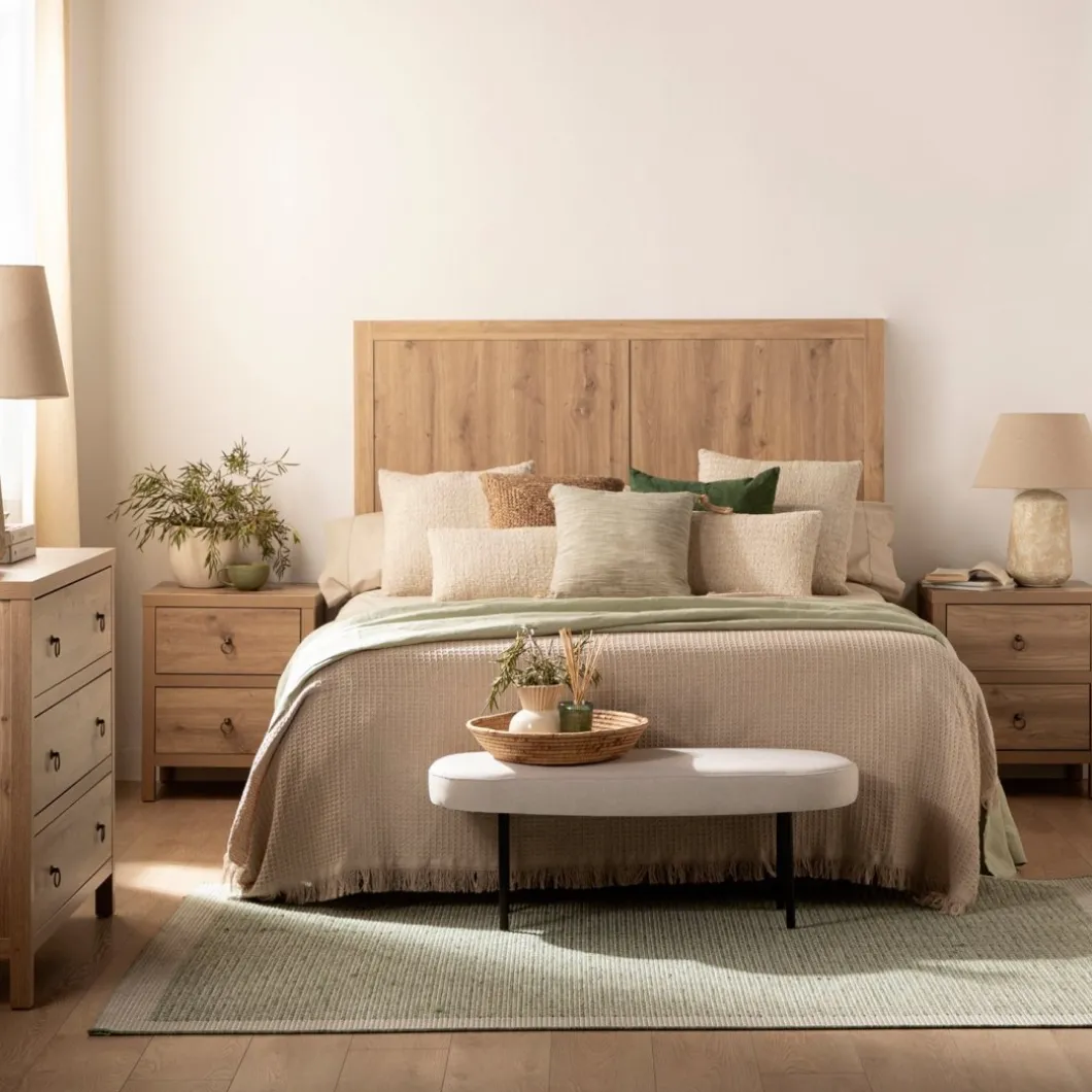 Descubre la belleza de la simplicidad y crea un espacio que invita al descanso y la tranquilidad con el cabecero en madera color natural Livorno. Su diseño minimalista y sencillo encaja con cualquier estilo de decoración. Se puede utilizar con camas de 135, 150 y 160 cm. La tornillería para su anclaje a pared no está incluida.