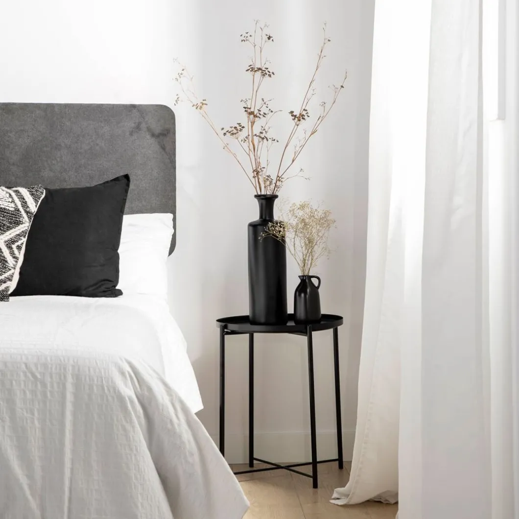 La mesa auxiliar Maika de estilo moderno y minimalista será el complemento ideal de tu decoración. Realizada en metal y lacada en negro es el complemento ideal para tu butaca o salón. Puedes usarla también como una estilosa mesita de noche y darle a tu dormitorio mucha personalidad.
