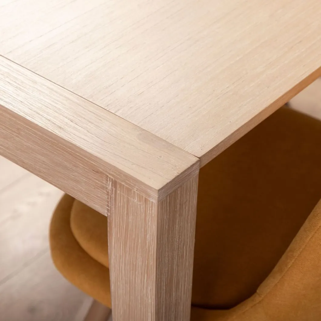 La mesa de comedor extensible 140/190 Mara en madera natural encaja en cualquier salón, comedor o cocina. Su sencillo sistema de apertura te sacará de un apuro en más de una ocasión, ya que permite pasar de una mesa de 6 a 8 comensales en cuestión de segundos. Está disponible en varios tamaños y acabados, escoge la que más te guste.