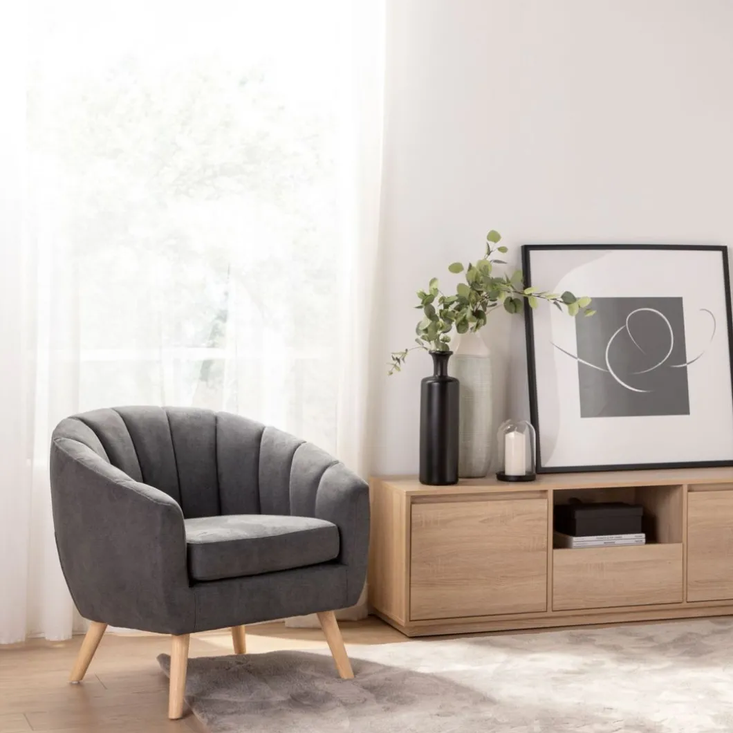 Con la butaca de lectura Miler tapizada en gris oscuro podrás crear rincones llenos de encanto en tu salón, comedor o dormitorio. Su respaldo levemente inclinado y sus reposabrazos la hacen perfecta para la lectura y el descanso. Está disponible en varios acabados para que puedas escoger el que mejor se ajuste a tu estilo.