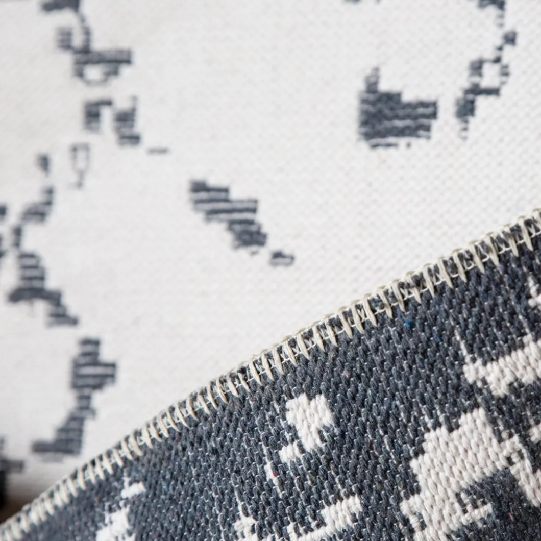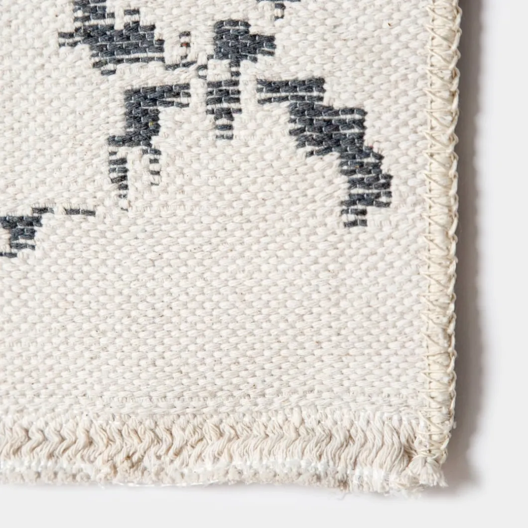 La alfombra de salón Mone tiene un diseño étnico y elegante en tonos beige y negro. Sus motivos irregulares, su look monocromo y los bordes de pequeños flecos la convertirán en una pieza protagonista en tu salón. Está confeccionada con fibras de poliéster de manera artesanal, lo que confiere a cada pieza ese toque de excluividad que buscas para tu casa, ¡y además es reversible!