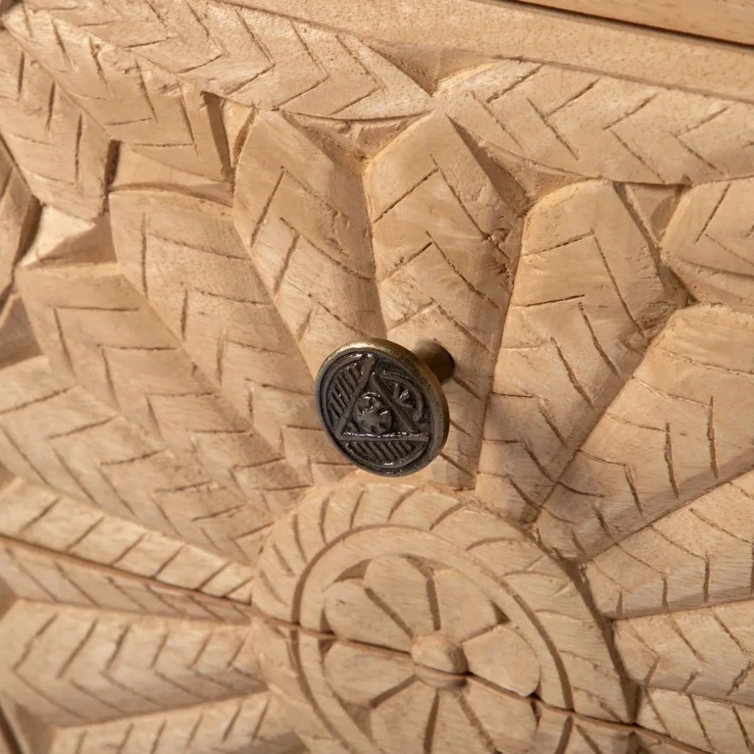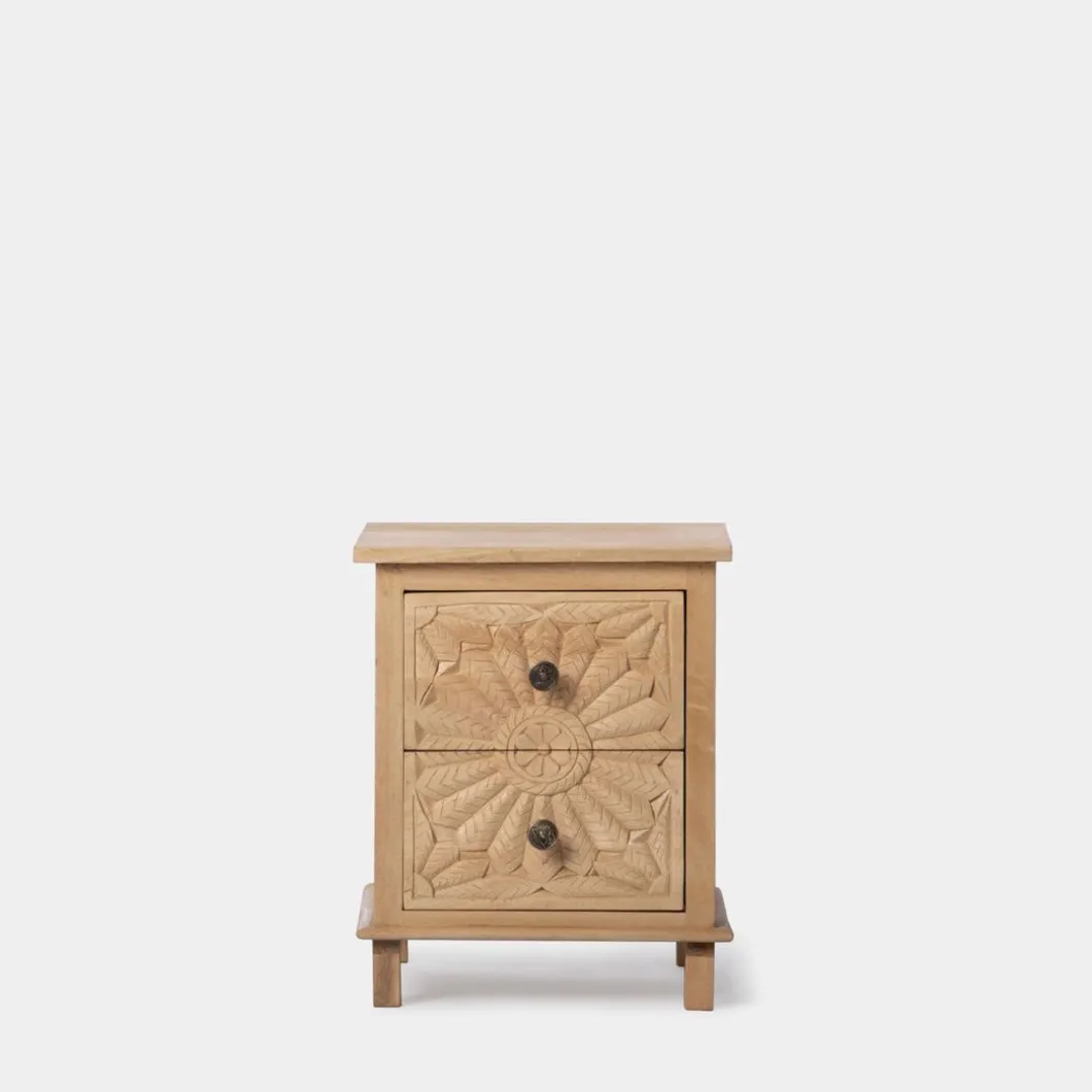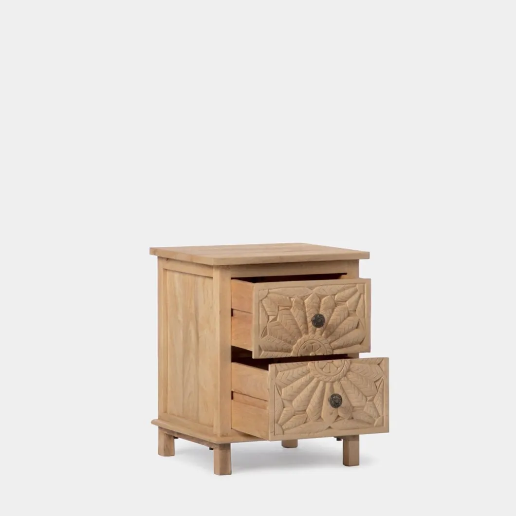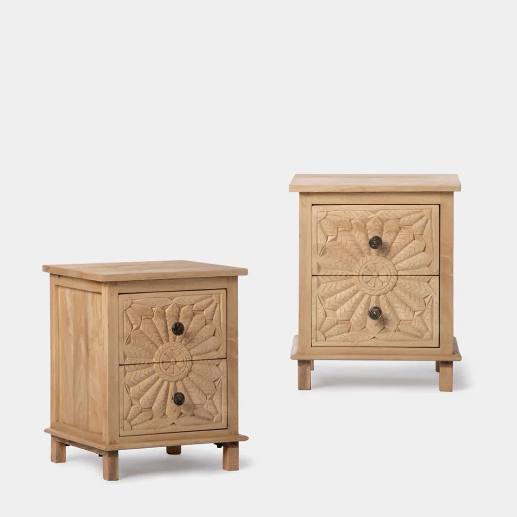 ¡Aprovéchate de este pack de 2 mesitas! La mesita de noche de madera de mango Mumbai es una pieza única y original que aportará personalidad a cualquier dormitorio. Cuenta con dos amplios cajones que te permitirán organizar y almacenar tus objetos personales. Ha sido fabricada artesanalmente con madera de mango, por lo que los colores y las vetas de la madera pueden variar ligeramente de una pieza a otra.
