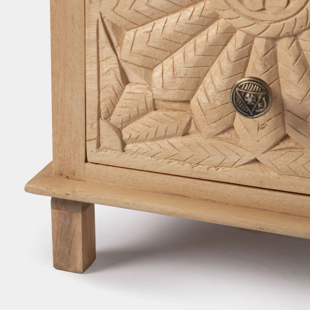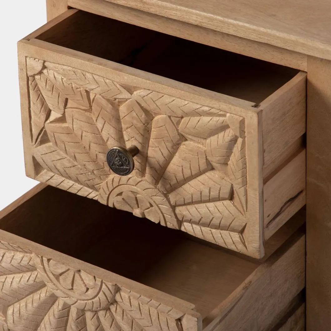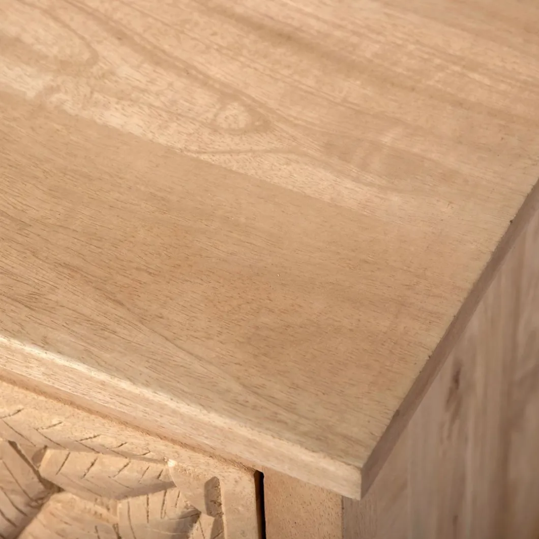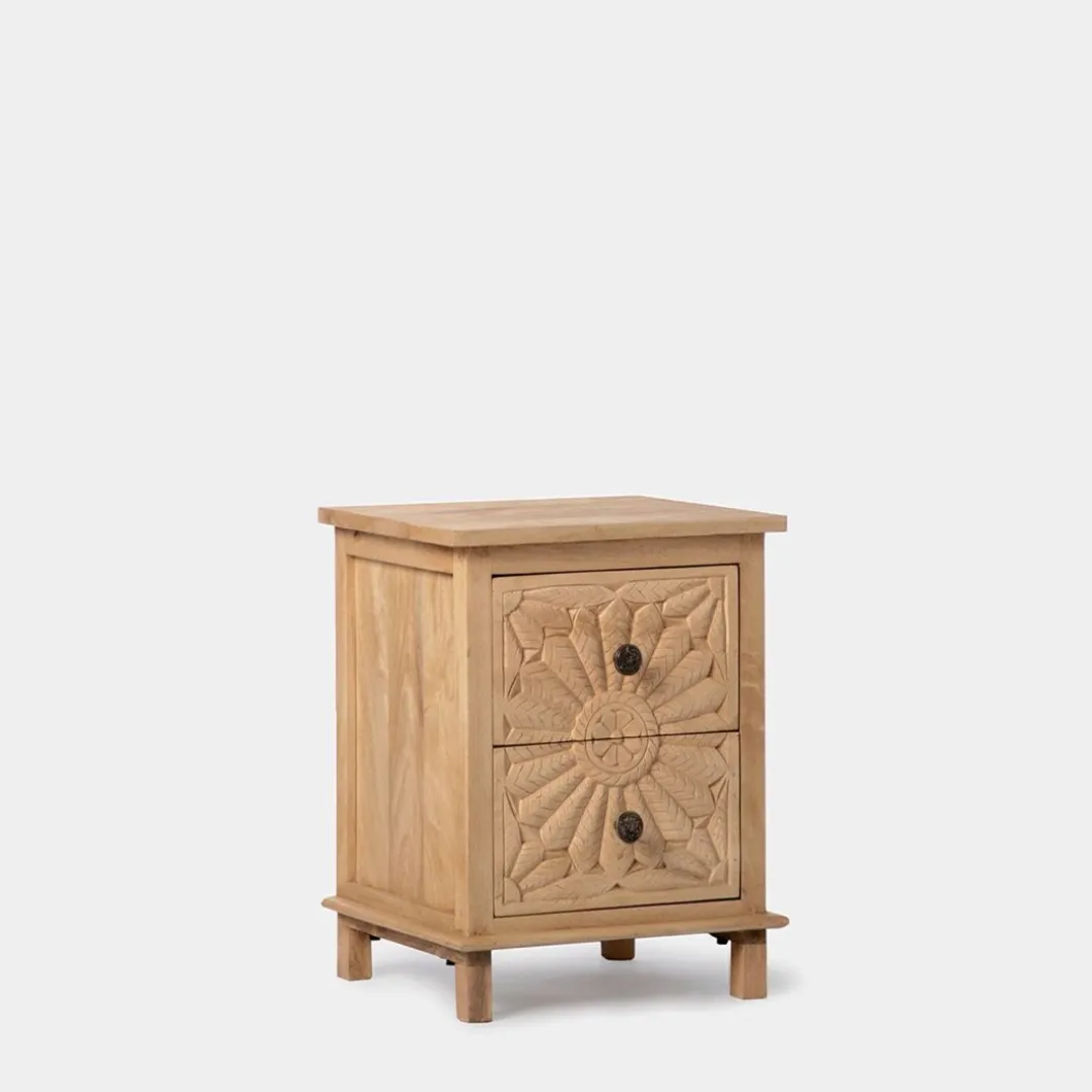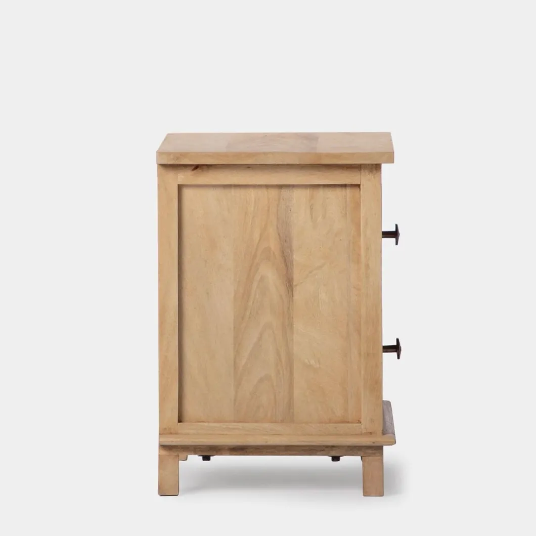 La mesita de noche de madera de mango Mumbai es una pieza única y original que aportará personalidad a cualquier dormitorio. Cuenta con dos amplios cajones que te permitirán organizar y almacenar tus objetos personales. Ha sido fabricada artesanalmente con madera de mango, por lo que los colores y las vetas de la madera pueden variar ligeramente de una pieza a otra.